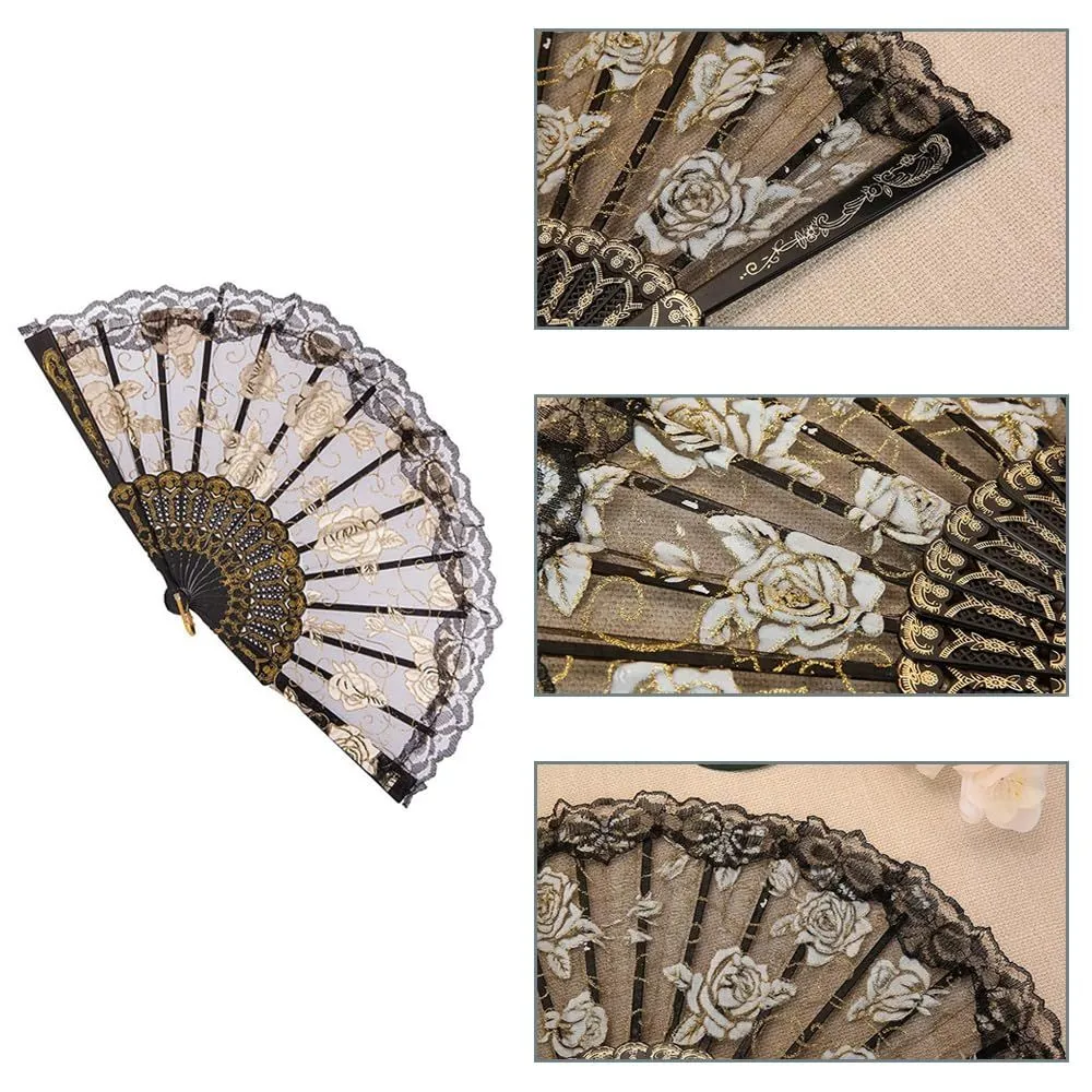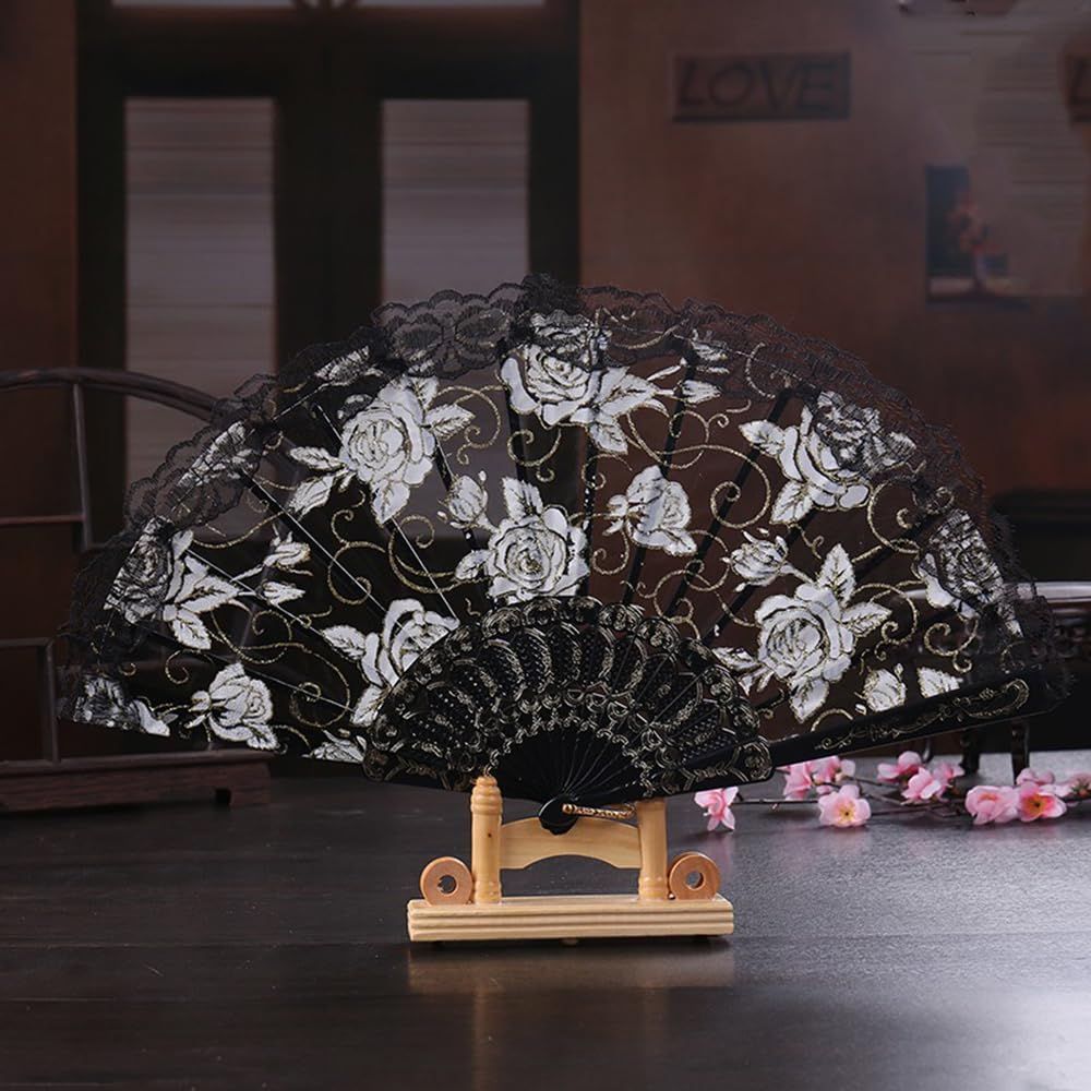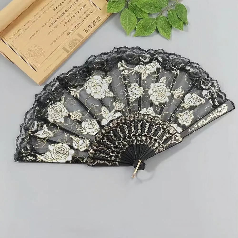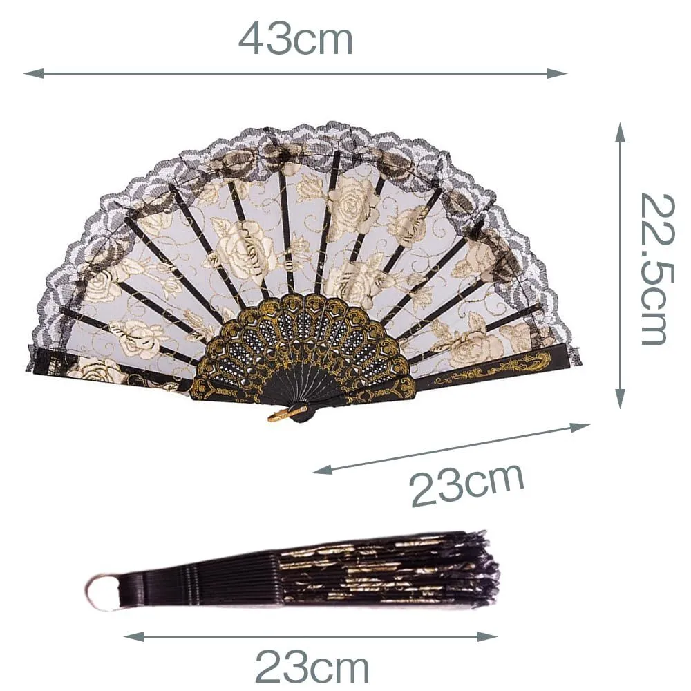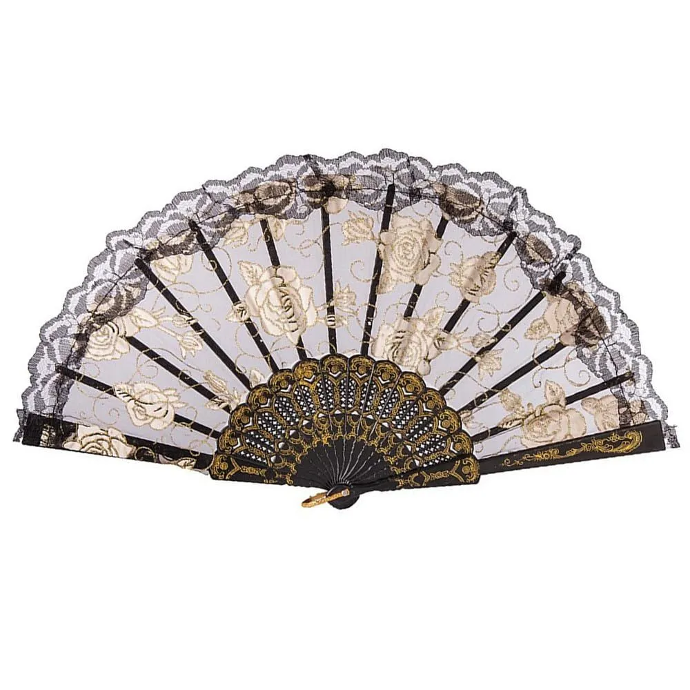 レース扇子 フラワーファン 薔薇 バラ柄 折りたたみ式 ダンス 踊り スペイン ドン・キホーテやスペインの踊り バレエ バレエ用品 練習用 ダンスパフォーマンス用