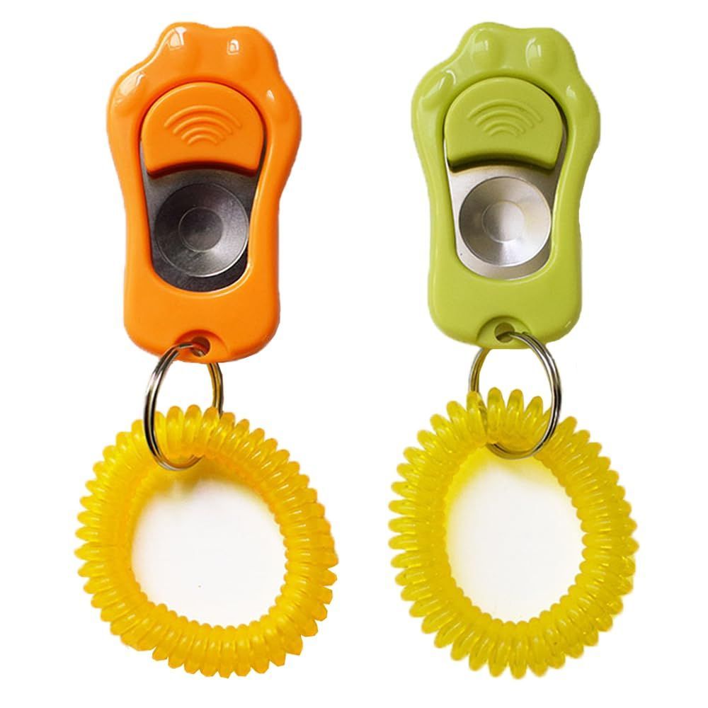 2パック犬のトレーニングクリッカー 犬クリッカー 犬笛 犬トレーニングクリッカー ペットトレーニングクリッカー 調整可能 訓練用品 PC素材 耐摩耗性 (緑とオレンジ)