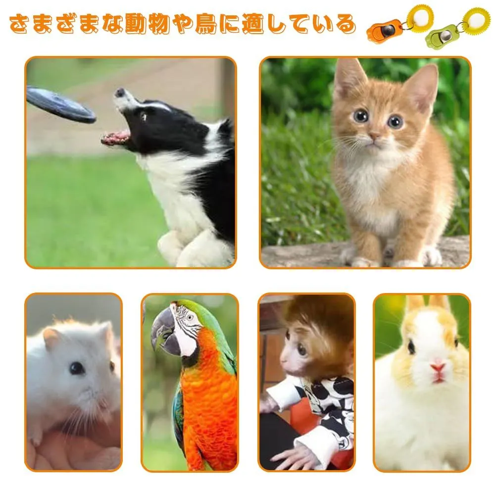[幅広い動物]:このクリッカーは犬、猫、ハムスター、サル、オウム、ウサギに使用でき、動物の訓練だけでなく、悪い行動を正すこともできる