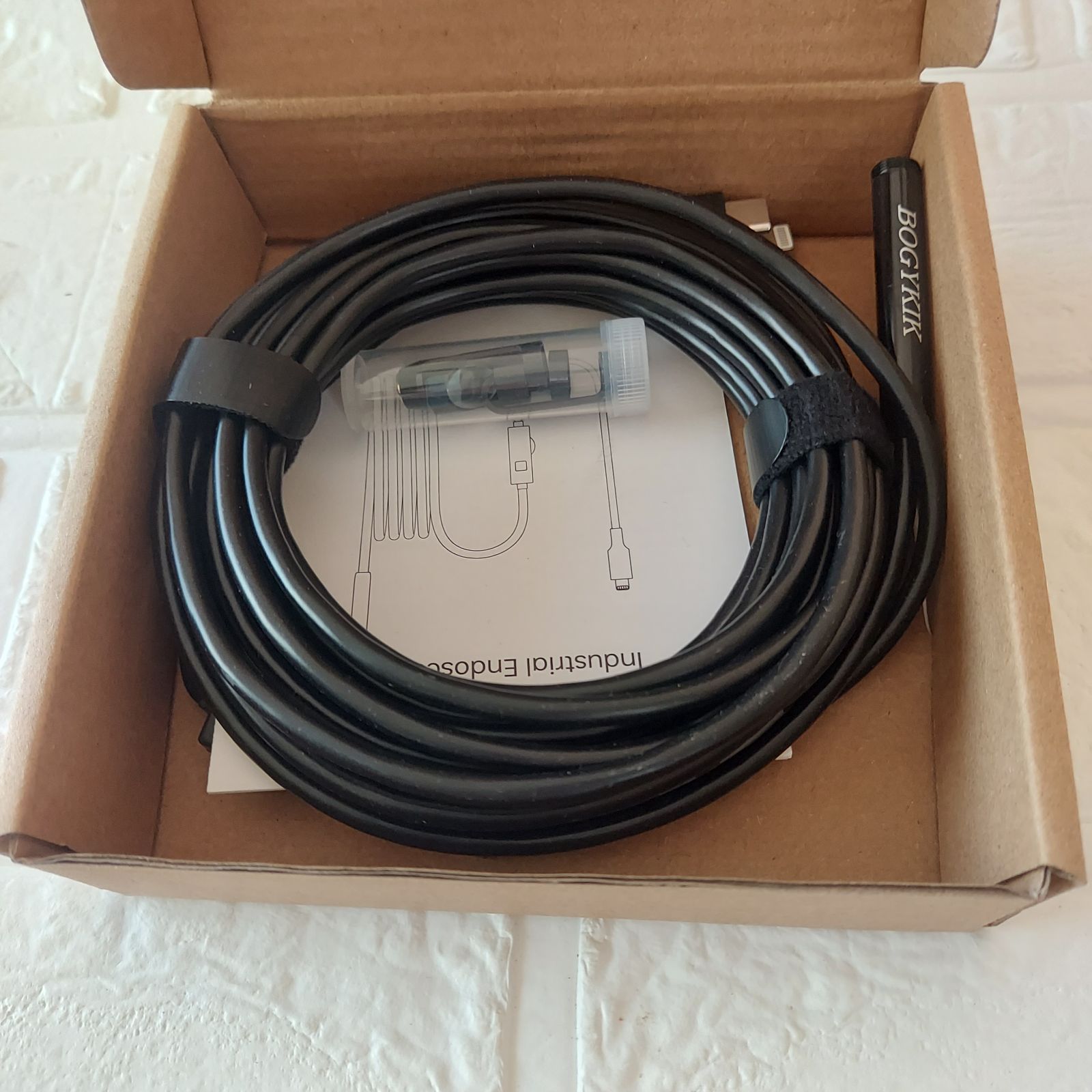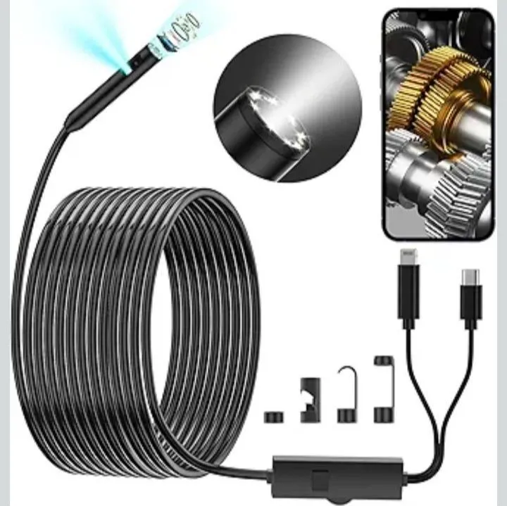 約5メートルの長さを持つ8mm径の内視鏡カメラ。スマートフォンに接続して配管や機械内部を簡単に検査可能。