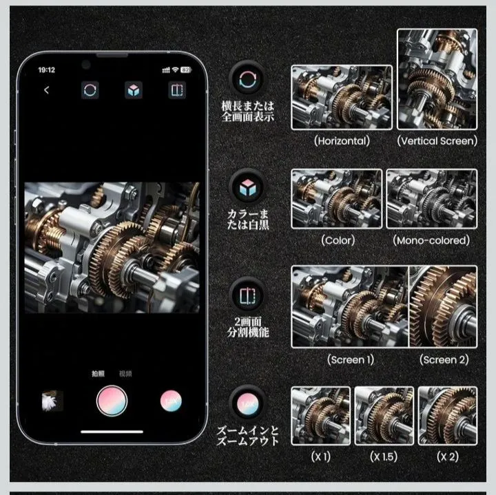 「簡単操作・Type-C専用機種に対応可」BOGYKIK内視鏡カメラはType-C専用のUSBケーブルが付属されており、ファイバースコープはAndroid/タブレットなど様々な機種に対応しており、ファイバースコープはGoogle Playストア(Android)から専用APPをダウンロードするだけで簡単に接続できます。APPでは写真およびビデオの保存ができ、撮影データはandroidスマホに保存されます。送信信号はWIFIやBluetooth接続よりも安定しており、時間を節約できます。