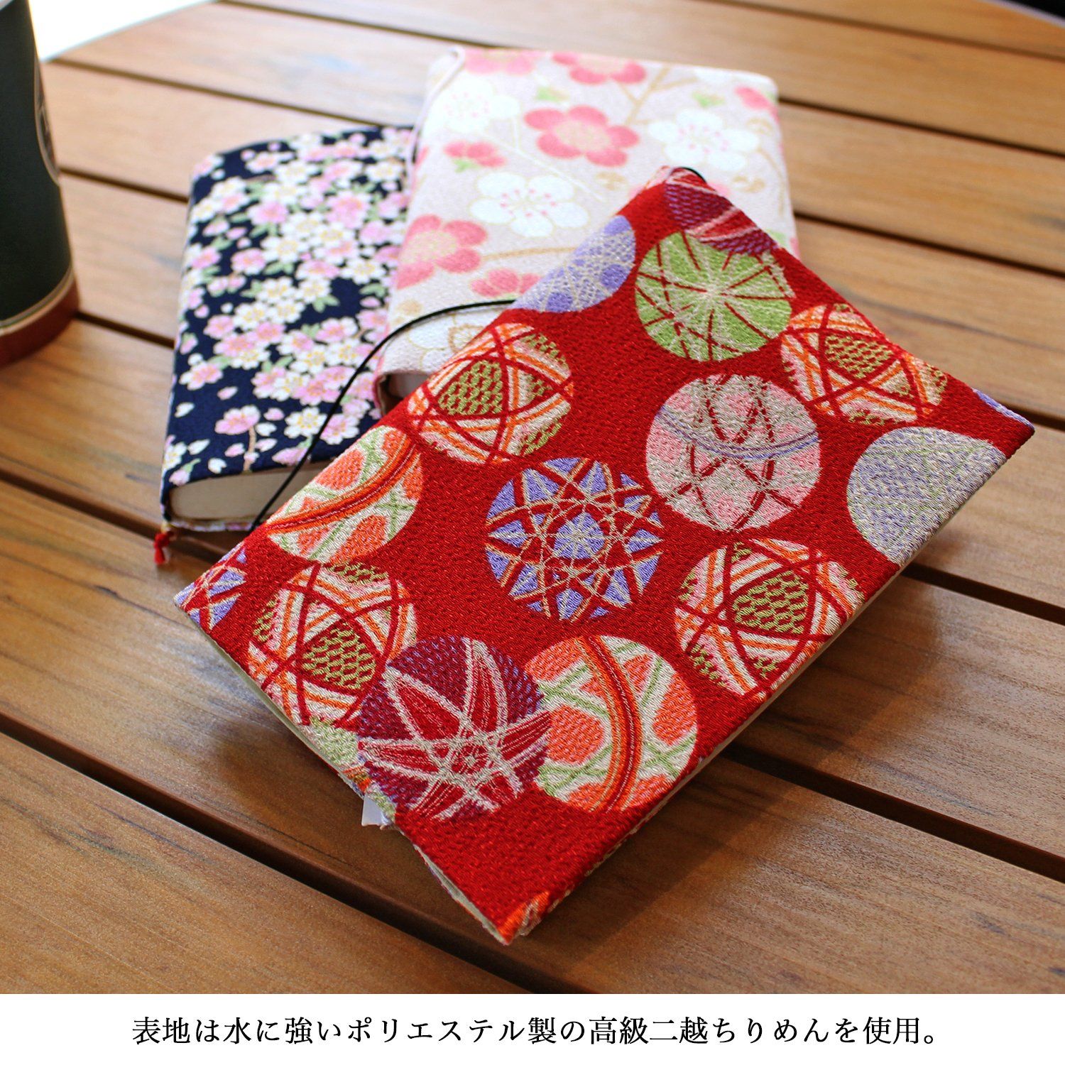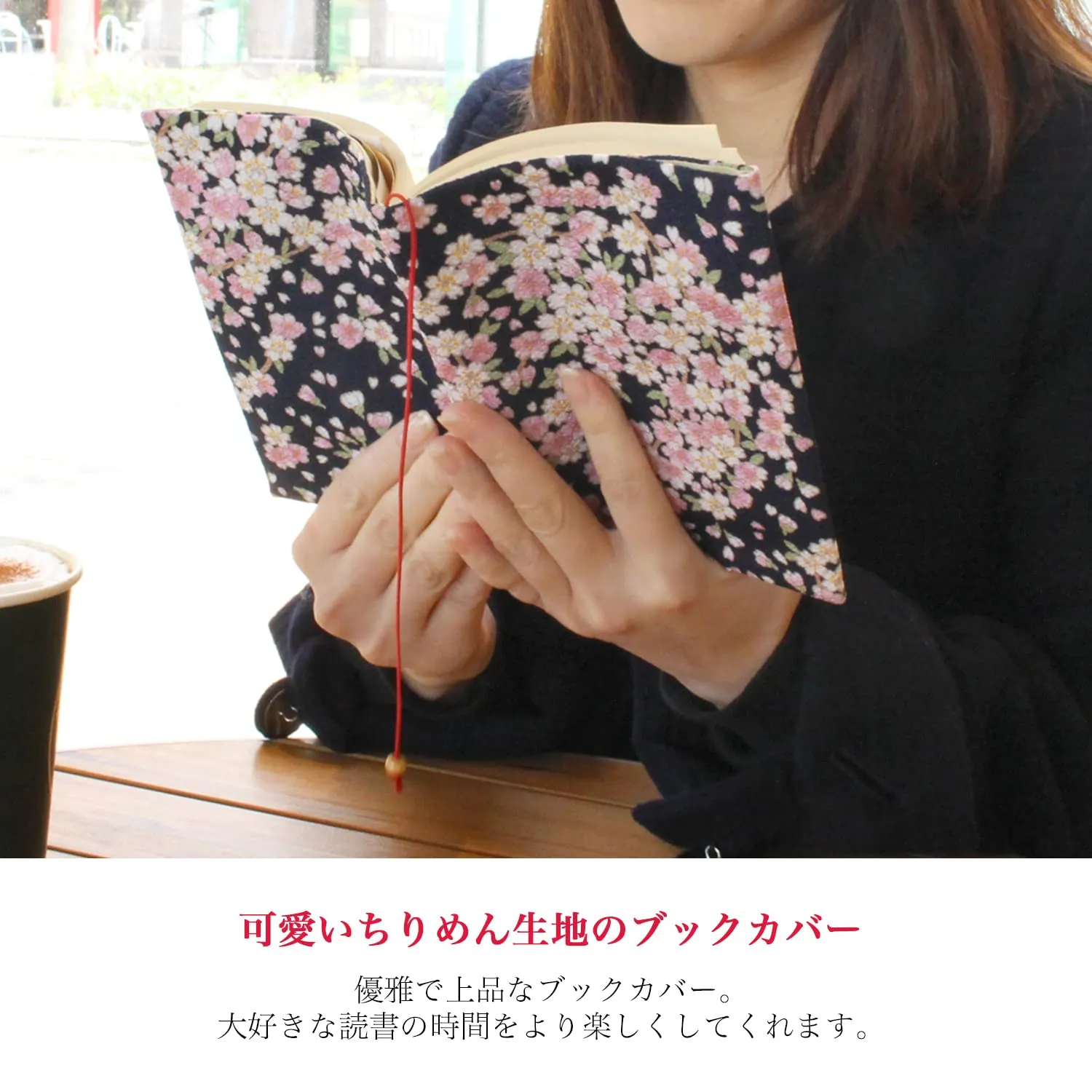 小紋工房 ブックカバー モダン椿(紺) 文庫本 A6 二越ちりめん 京都 和KOMONO 江戸小紋 0810 [モダン椿(紺)]