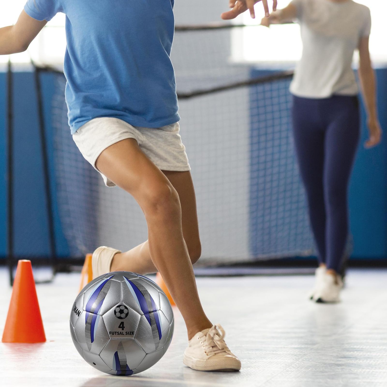 新品 フットサルボール 4号 低反発 室内用サッカーボール サイズ4 インドア 小学生以上対象のゲームと練習用ボール フットサルの表皮はTPU素材を使用しており 丈夫で耐久性があります シルバー ブルー レッド グリーン イエロー パープル