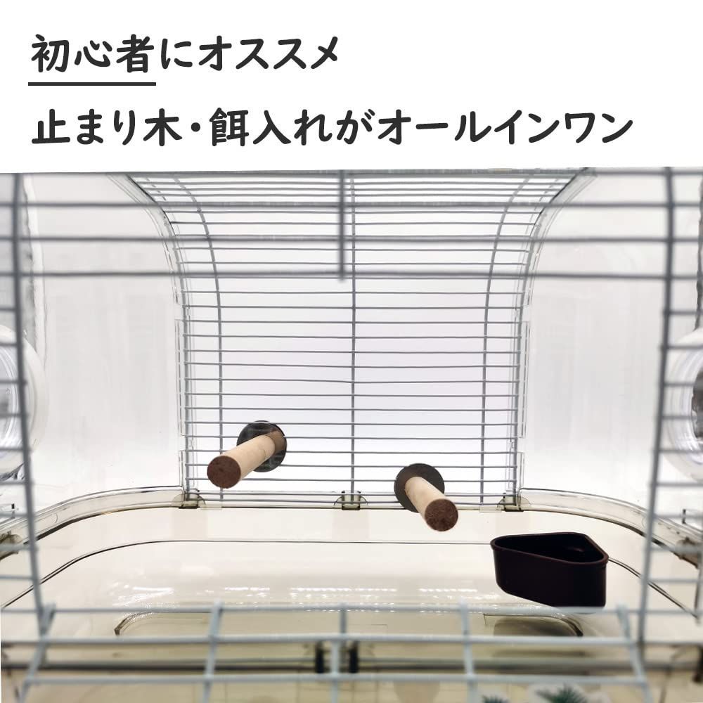 オールインワンの初心者セット。止まり木&エサ入れ付なので、手乗りであれば、ヒナの時から親鳥まで飼育することもできます。