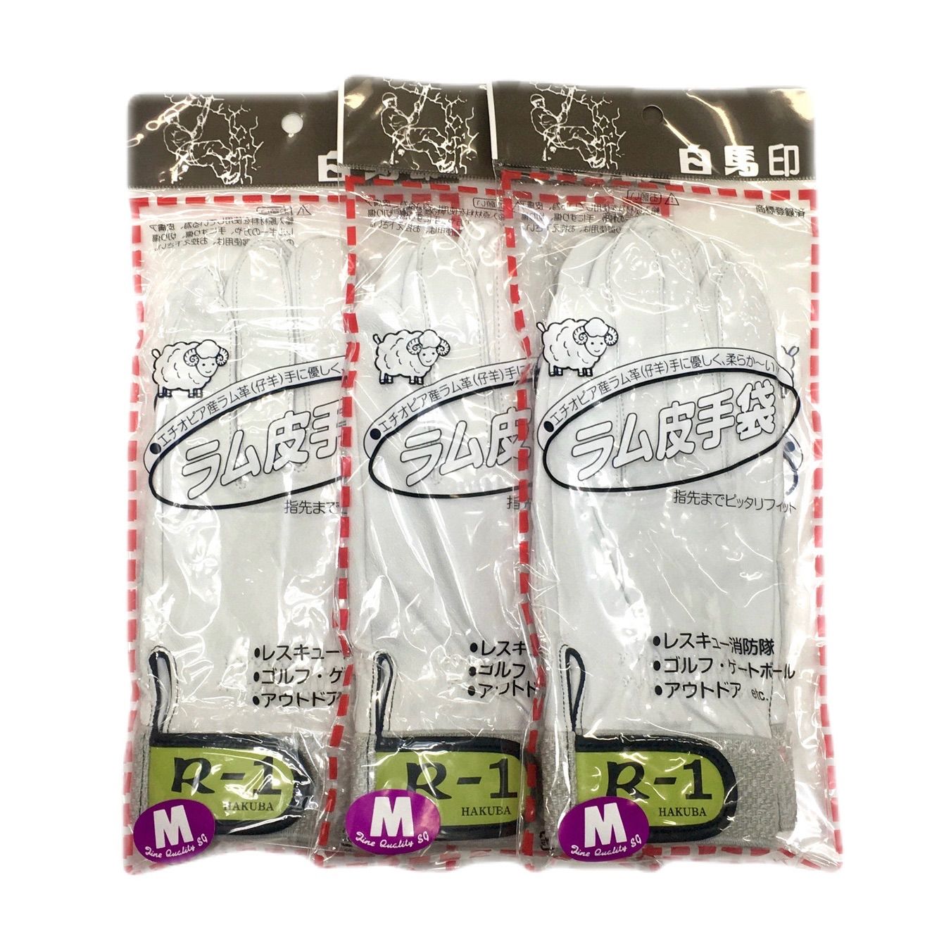 白馬印 R-1 新品 M×3双 ラム革手袋 消防 レスキュー