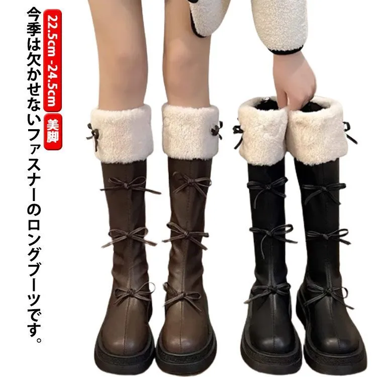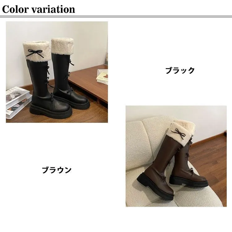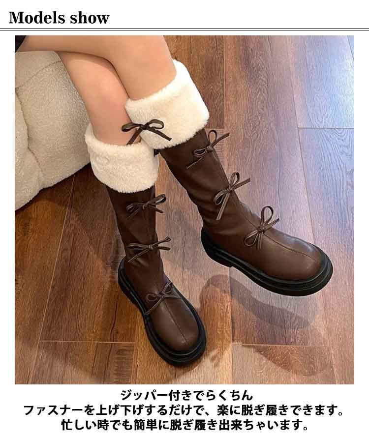 ブーツ レディース ロングブーツ ニーハイブーツ ジョッキーブーツ 厚底 厚底ブーツ 太ヒール ローヒール 歩きやすい 痛くない カジュアル シンプル 美脚 ふわふわ もこもこ ロング丈
