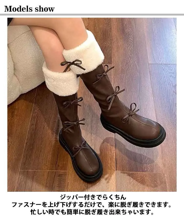 ■ 今季必須のファスナーロングブーツ 後ろ側にファスナー付きで、脱ぎ履きがとても簡単です。