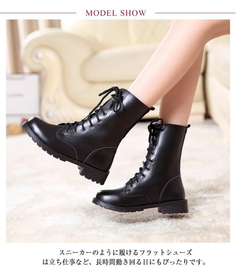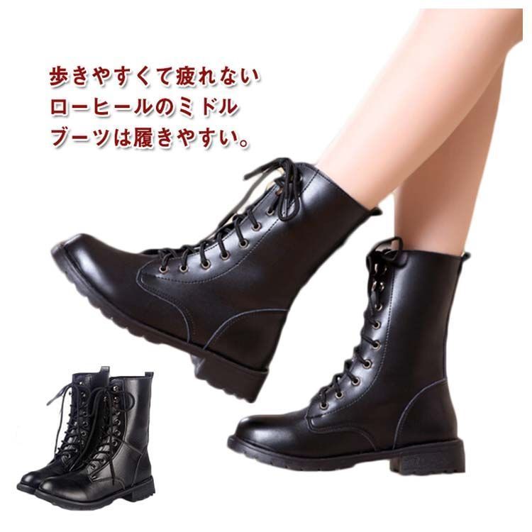 ■沖縄・離島は配送料が異なります。ご購入前にコメントをお願いいたします。 商品の特徴 歩きやすく疲れにくいローヒールのミドルブーツで、履き心地が抜群です。 スニーカーのような感覚で履けるフラットシューズなので、立ち仕事など長時間動き回る日にも最適。 レトロな袴(和装)とのコーディネートにもおすすめのレースアップブーツです。 ショート丈なので、春夏のブーツとして活躍。おしゃれな靴下を覗かせるコーディネートとも相性抜群です。 サイズ 22.5cm / 23cm / 23.5cm / 24cm / 24.5cm / 25cm / 25.5cm / 26cm 素材 PU カラー ブラック