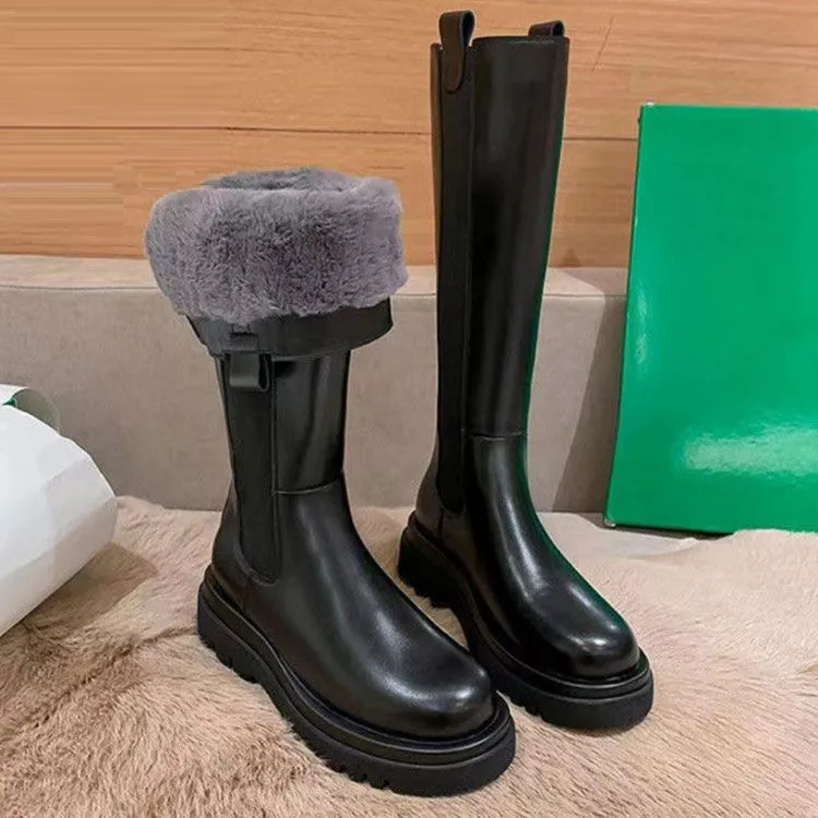 ロングブーツ レディース サイドゴア バックファスナー 厚底 トラックソール 筒太め ラウンドトゥ 細見え インヒール 足長効果 防水 撥水 裏起毛 裏起毛なし 春 秋 冬 あたたかい