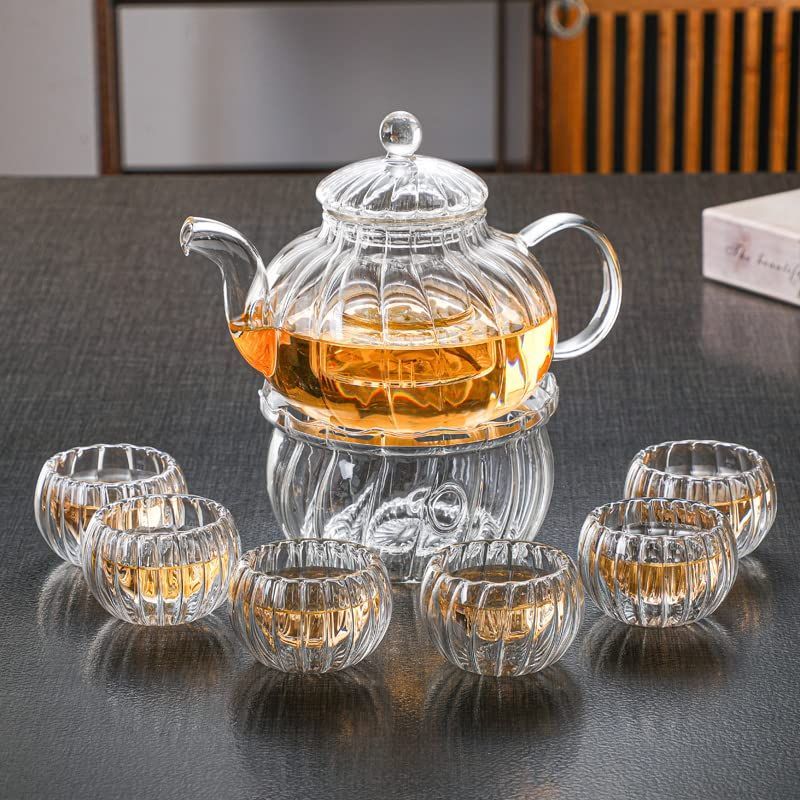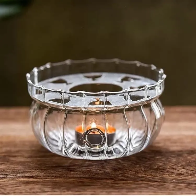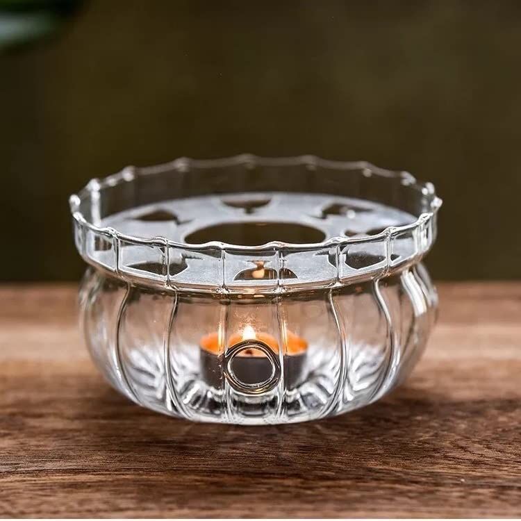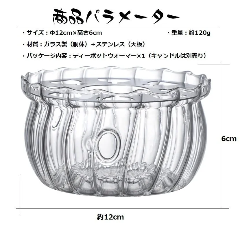 ティーポットウォーマー ガラス 透明 カボチャ型 キャンドル入れ 直径約12cm ティーウォーマー ポットウォーマー キャンドルホルダー カップウォーマー コースター 急須用 ティーポット用保温器 お茶 コーヒー フォンデュ おしゃれ