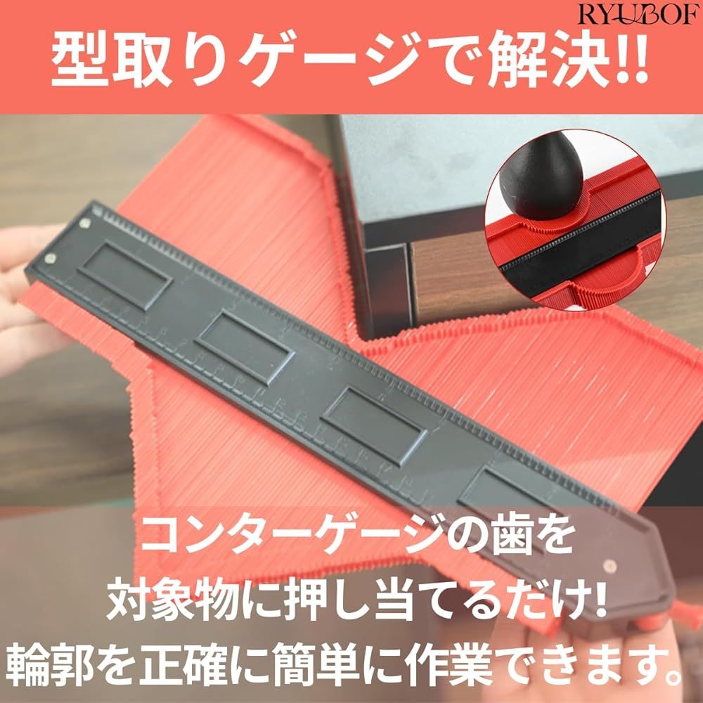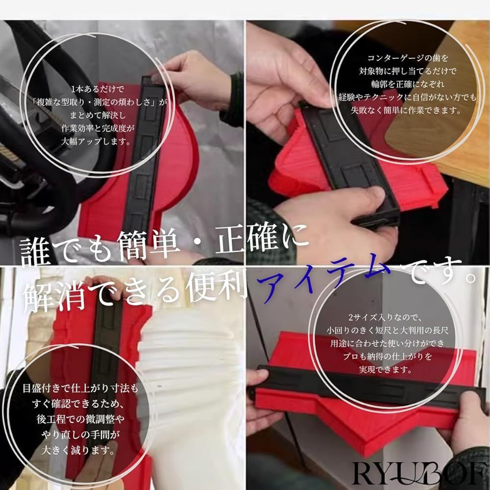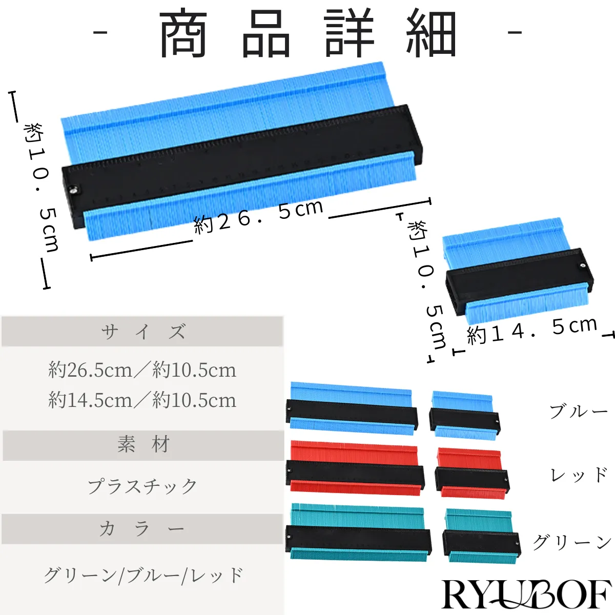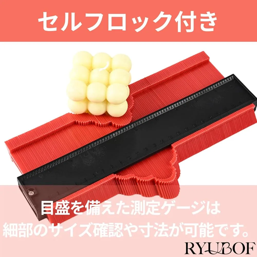 RYUBOF 型取りゲージ 2個セット コンターゲージ セルフロック式 曲線定規 目盛り付き 木工測定ゲージ DIY工具 不規則形状測定 木工用 (赤)