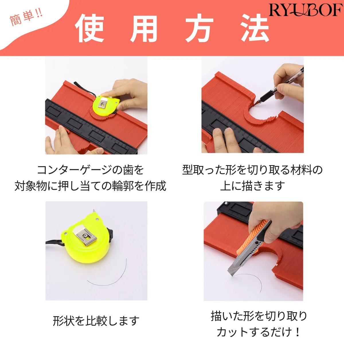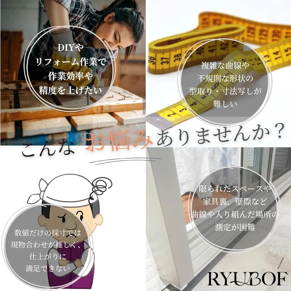【DIY測定工具として活躍】 床材やカーペット、車体パネル、ステンレス製ベースなど多様な場面で、不規則形状の輪郭を簡単・迅速に測定し、仕上がりの精度を高めます。