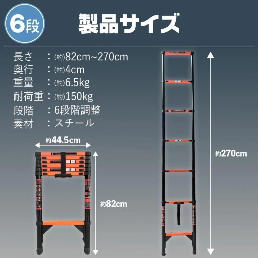 ◆北海道、沖縄、離島への配送は別途郵送料がかかります。対象の方はコメント欄にコメントをお願いします。 伸縮はしご 梯子 はしご ハシゴ 伸縮 折り畳み 伸びる ラダー コンパクト 持ち運び 軽量 屋根用 高所作業耐荷重150kg 伸縮梯子 スーパーラダー スライド式 安全ロック 雪おろし 雪下ろし 大掃除 ガーデニング 爆買 高耐久なスチール製で、約150kgの耐荷重を誇る頑丈なつくり。 重量物の取り扱いやプロの現場でも安心して使用できます。 使わないときはコンパクトに折りたたんで収納でき、玄関や物置はもちろん、車に積んでの持ち運びにも便利です。 防滑ステップには滑り止め効果のある凹凸構造を採用し、底部グリップも地面をしっかり支える滑り止め設計。 さらに、人間工学に基づいて設計された持ち手ハンドルで持ち運びも快適です。 ラダー部分には安全ロック機能を搭載しており、伸ばすと“カチッ”という音とともにしっかり固定され、安全性を高めています。 屋外作業や現場作業に最適な、実用性と安全性を兼ね備えたアイテムです。