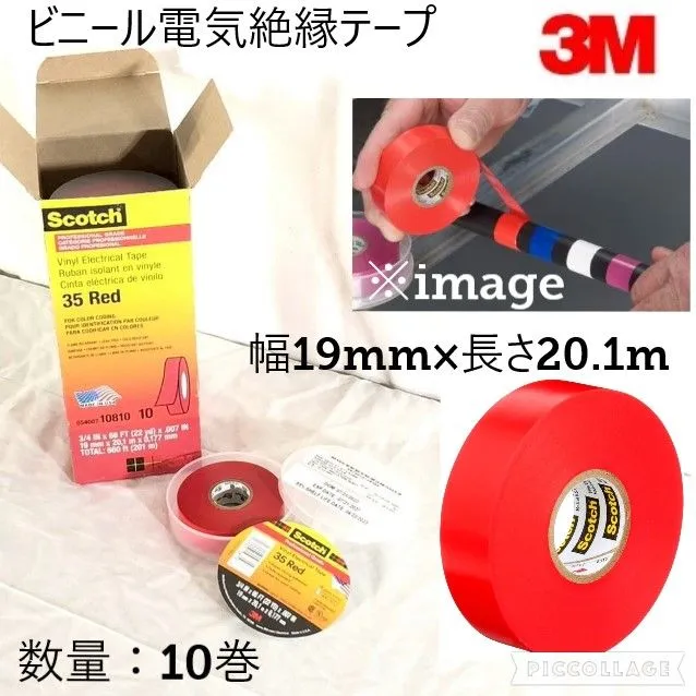 【商品の説明】 ・ NSN:5970010139369 ・ ビニール電気絶縁テープ ・ メーカー:3M ・ Scotch/スコッチ ・ Vinyl Electrical Tape 35 Red ・ 耐熱105℃/耐寒-10℃ ・ 外形サイズ(約):幅19mm×長さ20.1m×厚さ0.177mm(3/4in×66FT×0.007in) ・ 数量:10巻