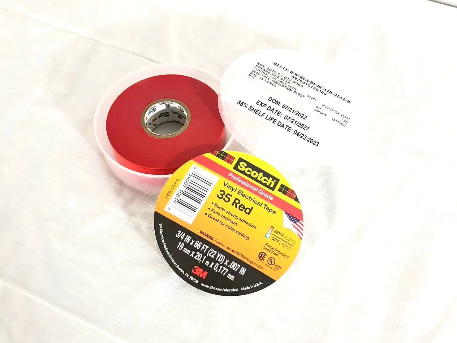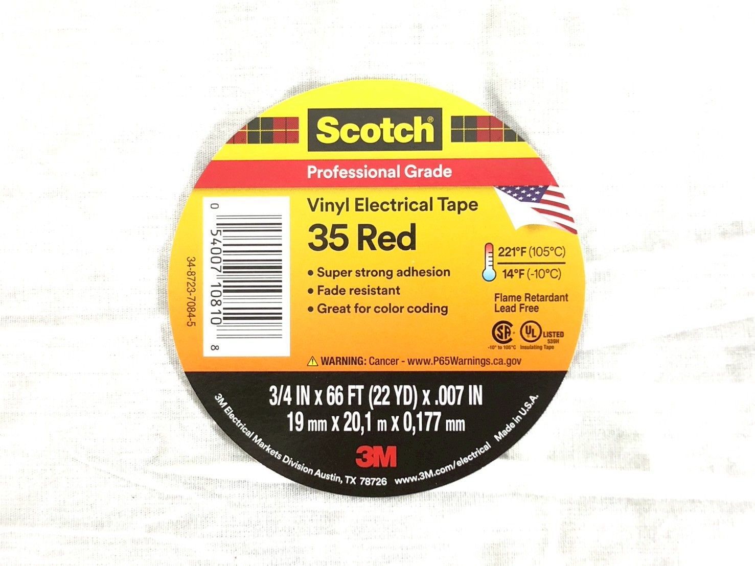 【米軍放出品】未使用品 ビニール電気絶縁テープ 3M Scotch/スコッチ 幅19mm×長さ20.1m×厚さ0.177mm×10巻 (60)☆bk27mk#25
