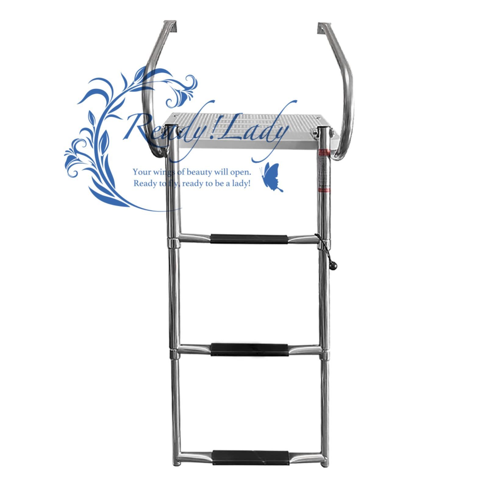 ●機能 -頑丈な316ステンレス鋼構造、耐久性と頑丈さ。 -広いステップ、便利な保管のための伸縮式チューブ。 -搭乗を容易にするための非常に高い手すり。 -デッキへの取り付けが非常に簡単です。このプラットフォームラダーのデザインは、ポンツーンボートやドックラダーのように使用することを可能にします。