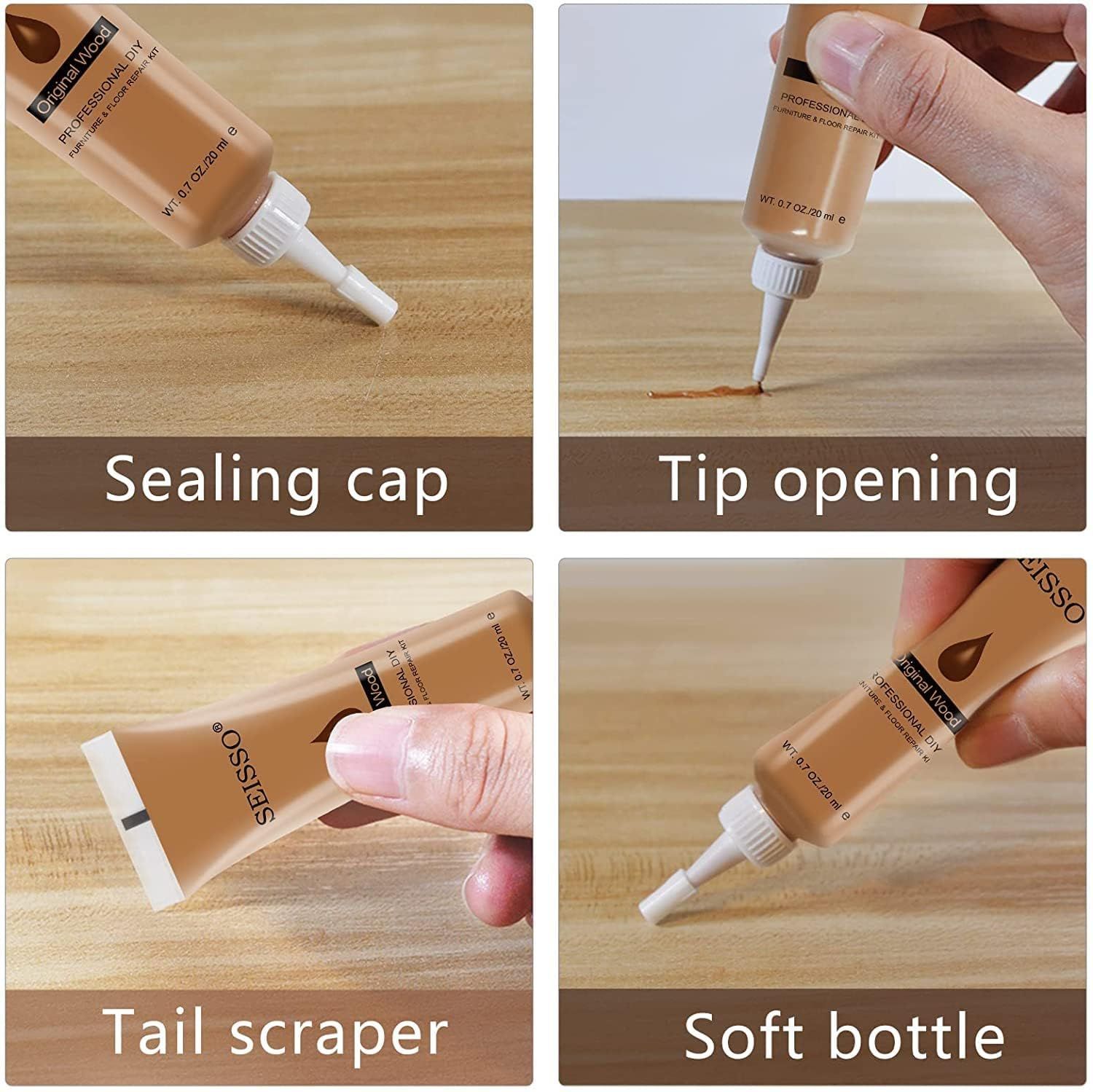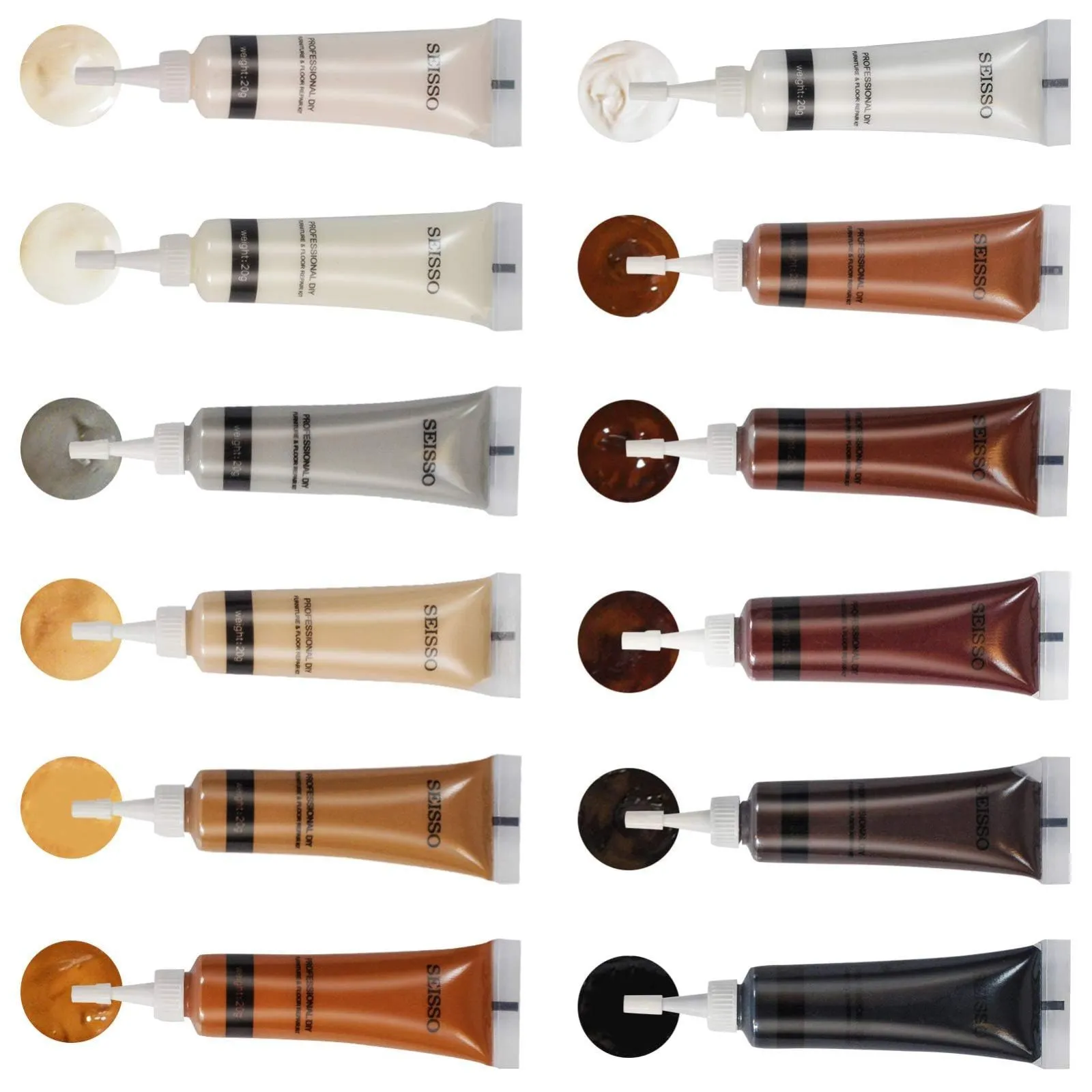 SEISSO 12色 木製品キズ補修 補修クリーム キズ直し フローリング 木工 木製の家具 ドア 床 傷 すりキズ用 汚れ ホワイト アイボリー ウッドホワイト グレー オーク ウッド アンバー ローズウッド チーク ブラック ブラックウォールナット 付属品なし