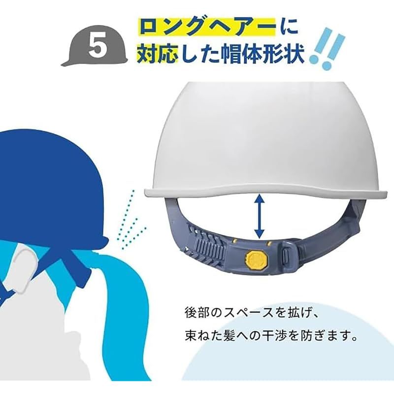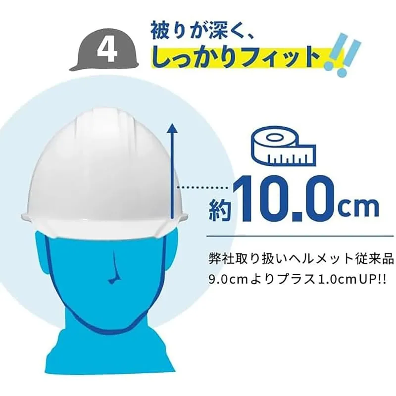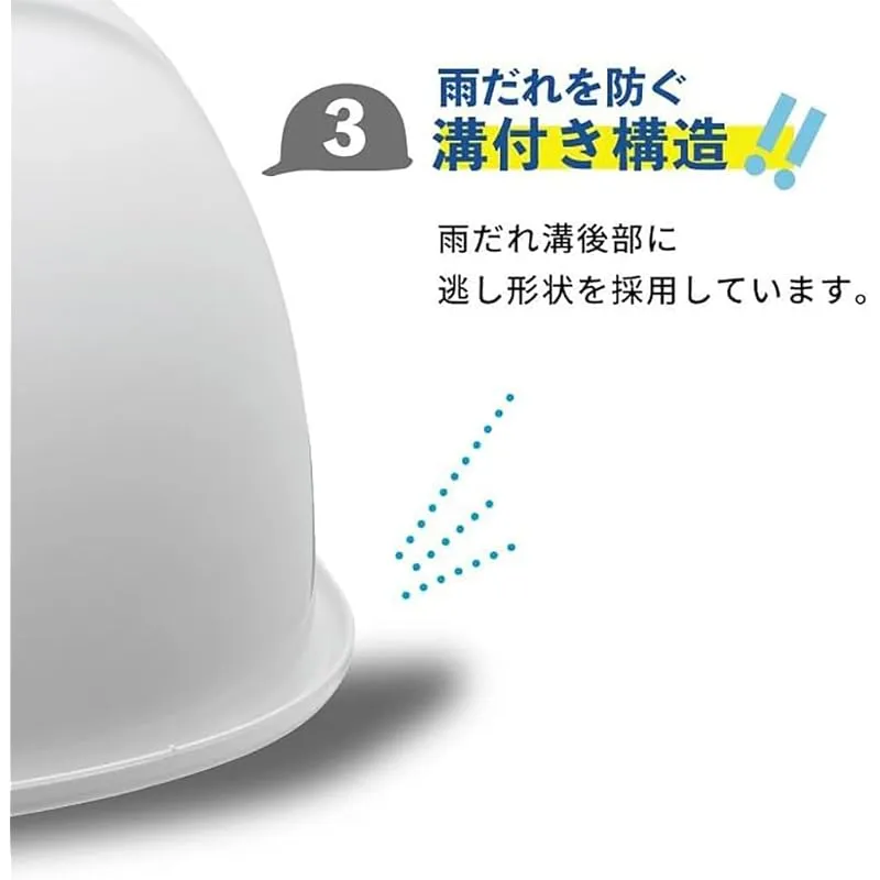 【商品概要】 ツバ付きヘルメット最軽量級!!(軽量性に優れ、首や身体の負担を軽減します。) 雨だれを防ぐ溝付構造(雨だれ溝後部に逃し形状を採用しています。) ヘッドバンドが片手で調整可能 通気性にこだわり清涼感UP 被りが深くしっかりフィット(弊社取り扱いヘルメット従来品9.0cmより、プラス10mmUP) ロングヘアーに対応した帽体形状(後部のスペースを拡げ、束ねた髪への干渉を防ぎます。) 頭部にやさしいハンモック(頭頂部接触面積が広い、頭部にやさしいハンモックを使用。) ご家族、従業員様の安全を守るため まとめ買いもお受けできます。 商品名:防災用軽量ヘルメット ホワイト 頭囲寸法:54~62cm 重量:約330g 材質:ABS樹脂 カラー:ホワイト 標準装備品:耳紐 アゴ紐 ハンモック ヘッドバンド 検定合格規格:飛来・落下物用、電気用 ※防災用軽量ヘルメット は「防災用」へルメットです。 「オートバイ・自転車用」として、ご使用しないでください。 ※ライナー無しのヘルメットになります。
