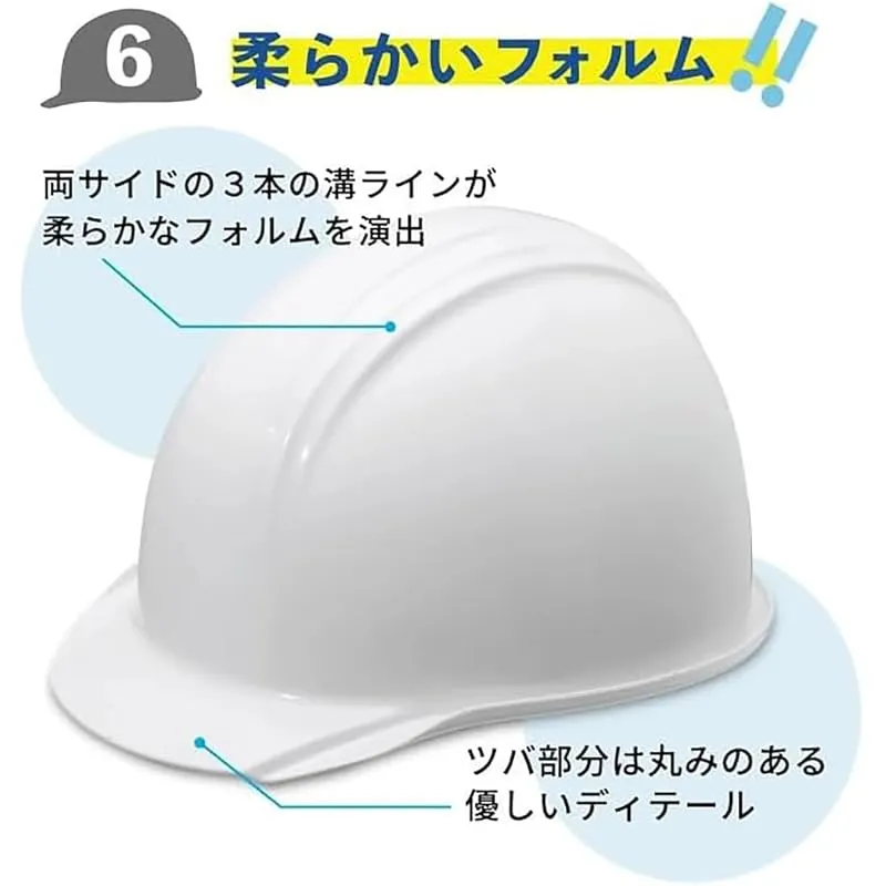 ■軽く、しなやかに。優しく、強い防災用ヘルメット ツバ付きヘルメット 最軽量級。 作業効率を向上させる 快適機能。 優しい 内側構造。 被りが深いうれしい フィット性。 女性の視点も意識した形状。 柔らかなフォルム。