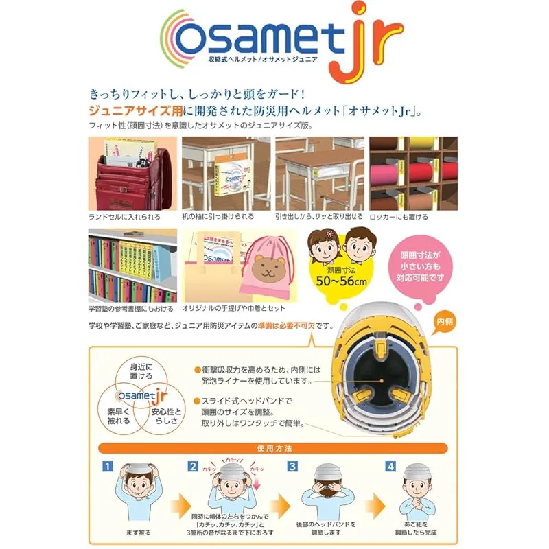 【新品】 折りたたみ防災用ヘルメット オサメット(反射材付き) osamet (子ども用 オレンジ) 防災防犯ダイレクト 0