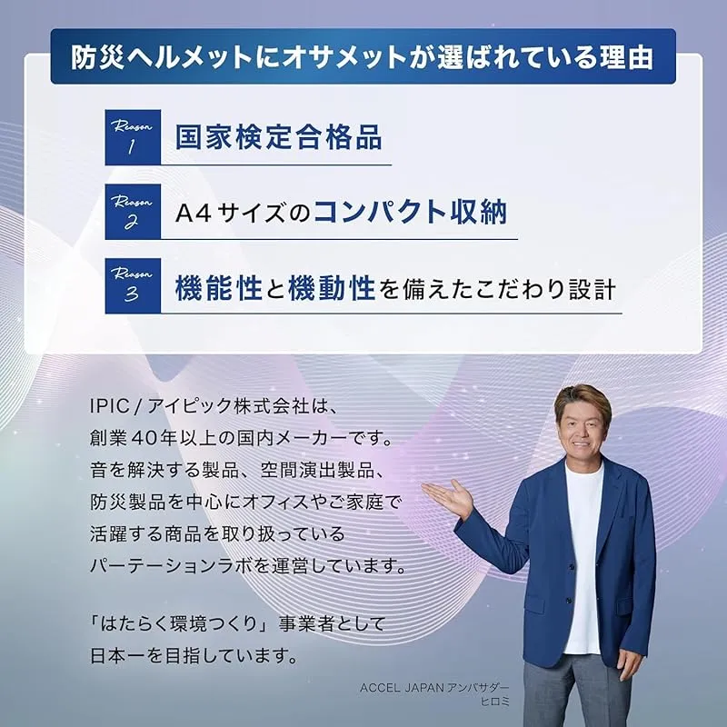 【商品概要】 IPIC/アイピックが推奨する防災アイテム 収縮式ヘルメット オサメット OSAMET 国家検定合格品