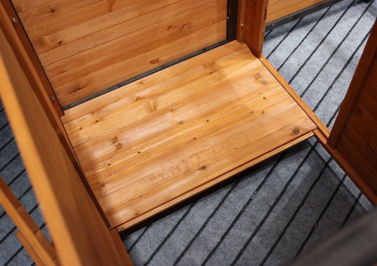 【詳細ハイライト】この木造家屋は、ドアのデザイン、シェード、自然な雰囲気、シンプルで便利な設置、防雨、シンプルで豪華、丈夫で耐久性があり、ペットが生活環境を改善するのに役立ちます。 ?