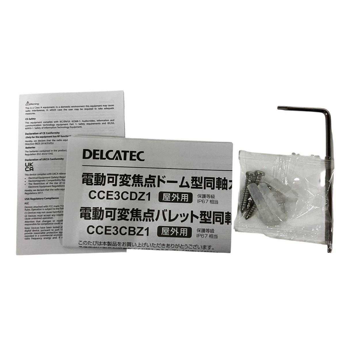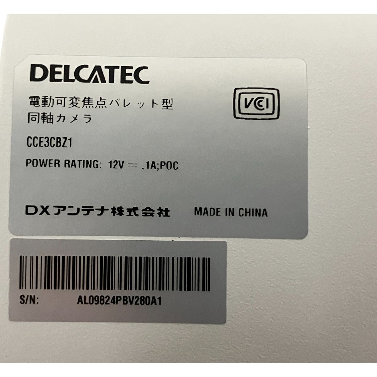 こちらは「DELCATEC デルカテック 電動可変焦点バレット型同軸カメラ CCE3CBZ1 防犯カメラ 未使用 」でございます。