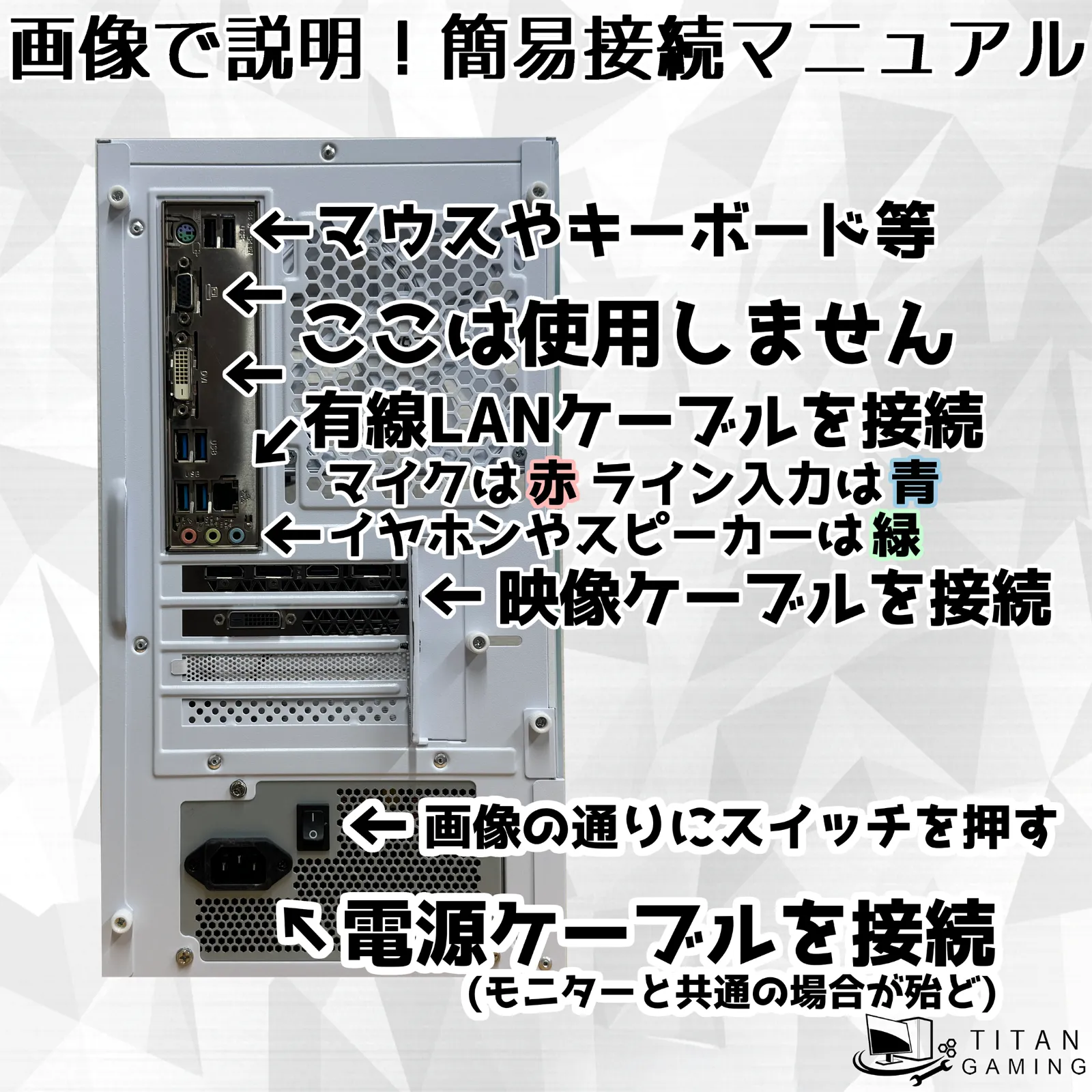 【他にも多数のPCを出品中】 用途・ご予算に応じた構成をご用意しております。 ぜひ他の商品もご覧ください → #TITANGaming ≪ 商品情報 ≫