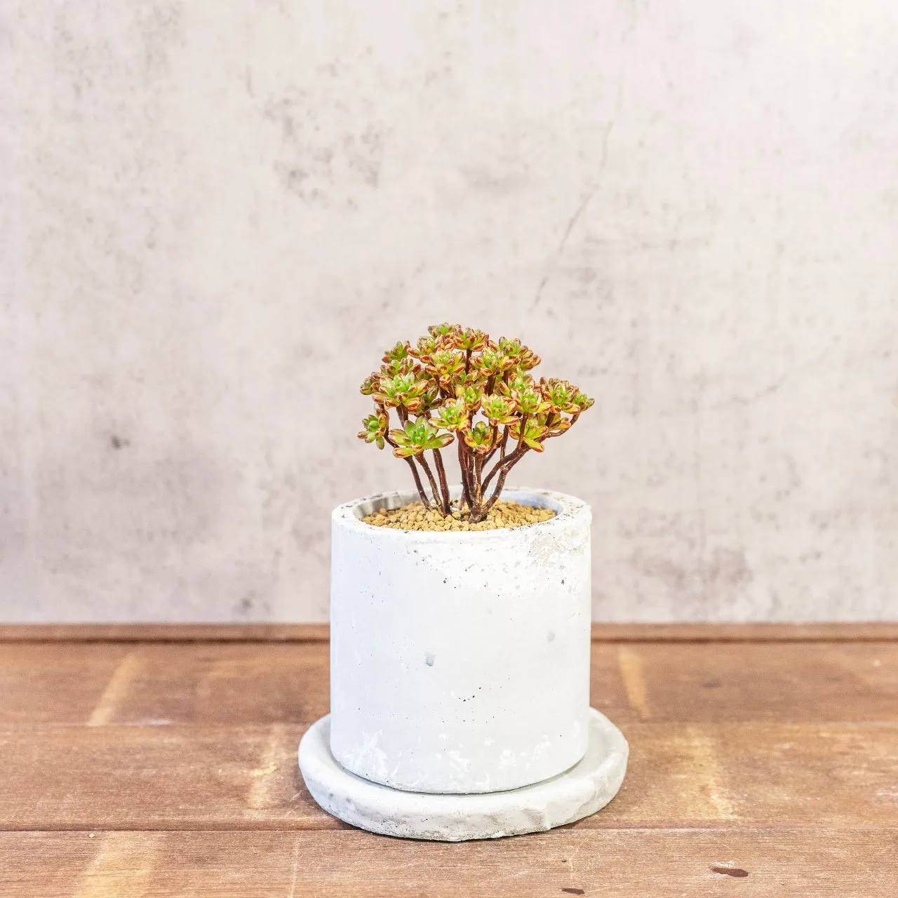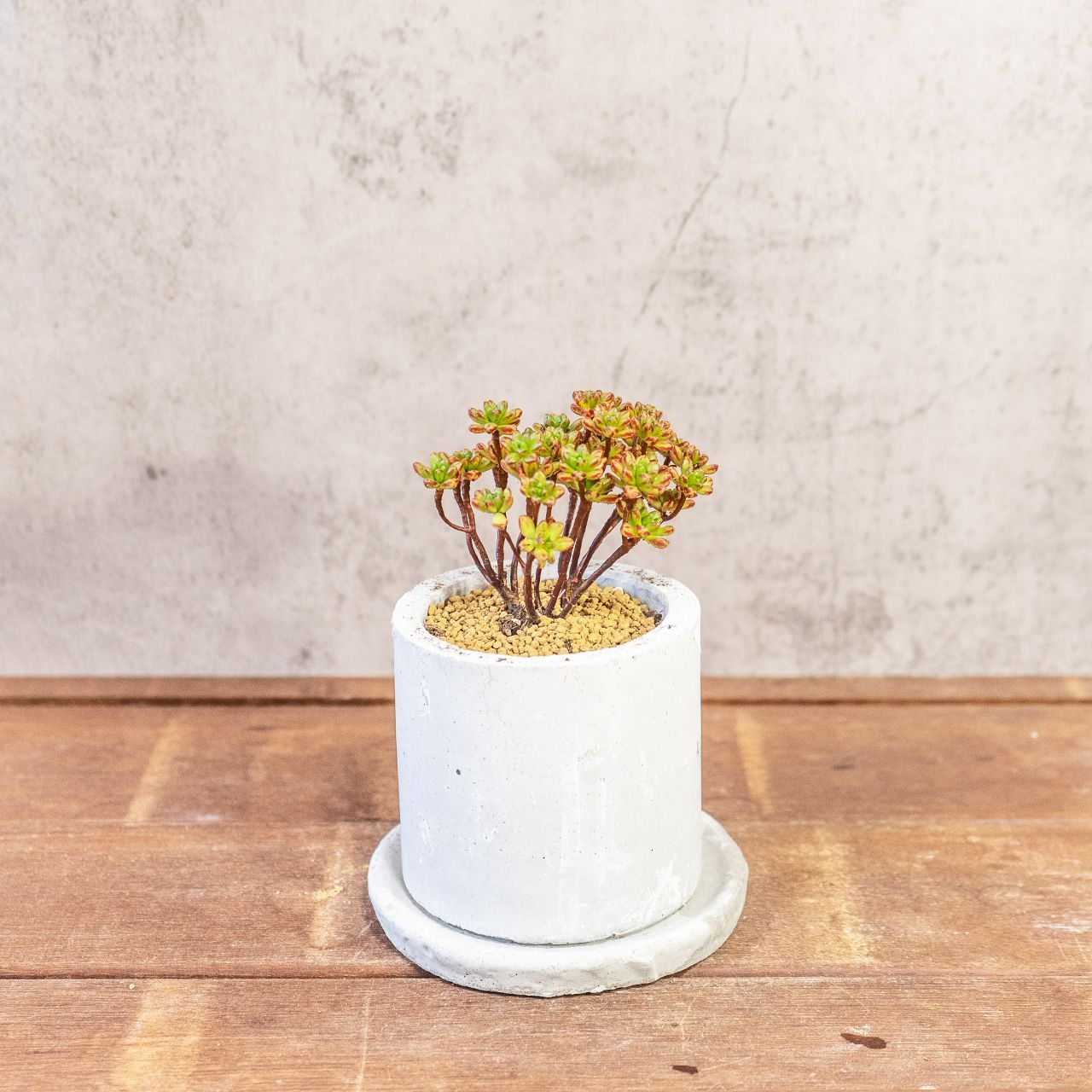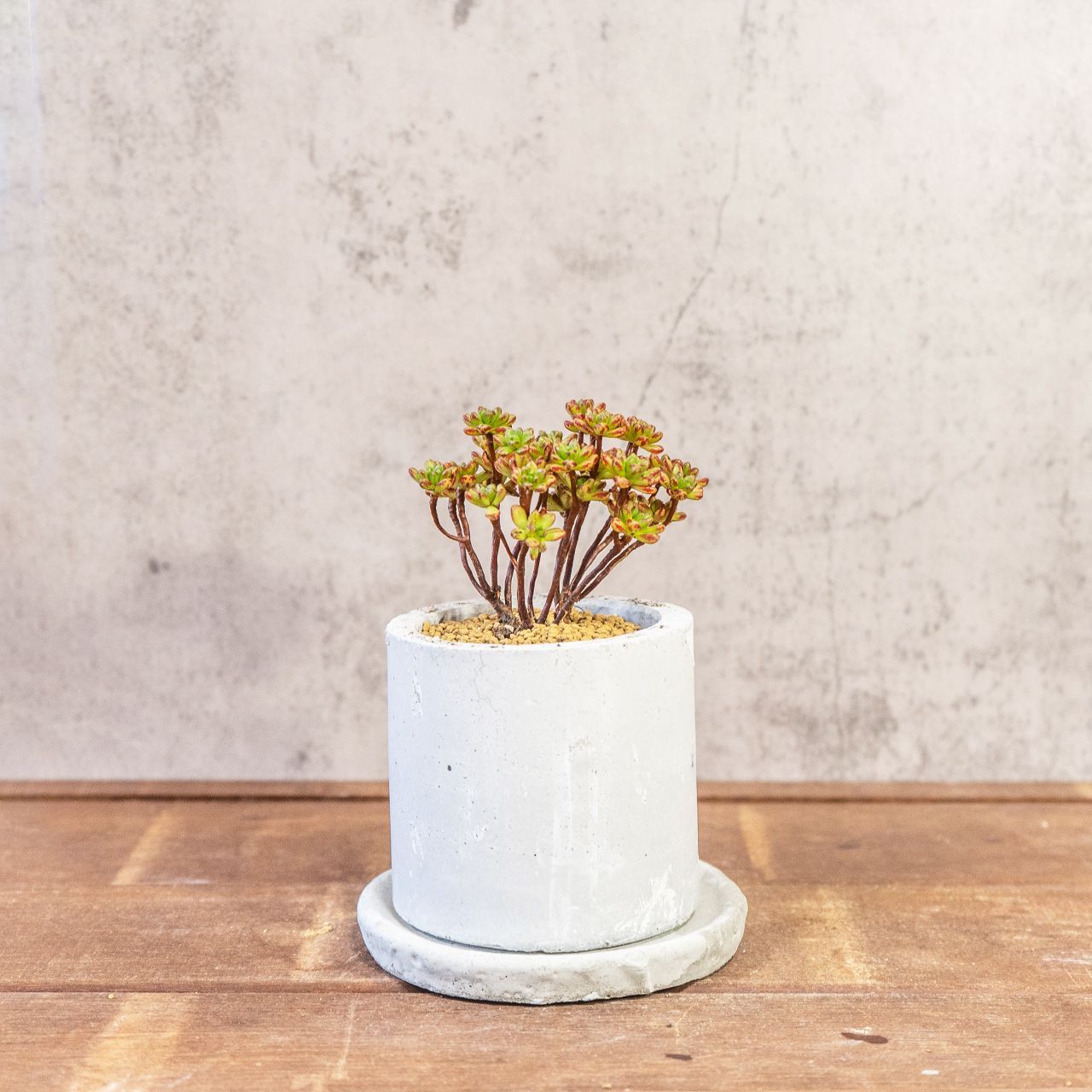【手づくりモルタル鉢】。 ミニマルな質感が植物と相性抜群で、飾るだけでお部屋の雰囲気を変えてくれます。 ✨ ここがポイント! ・ユニークな樹形:趣のある盆栽風仕立ての一点物 ・美しい彩り:紅葉した肉厚ロゼットが魅力のミニ株 ・根にやさしい:乾きやすいモルタル鉢で根腐れを防止 ・管理シート付:初心者の方も安心の育て方ガイド同封
