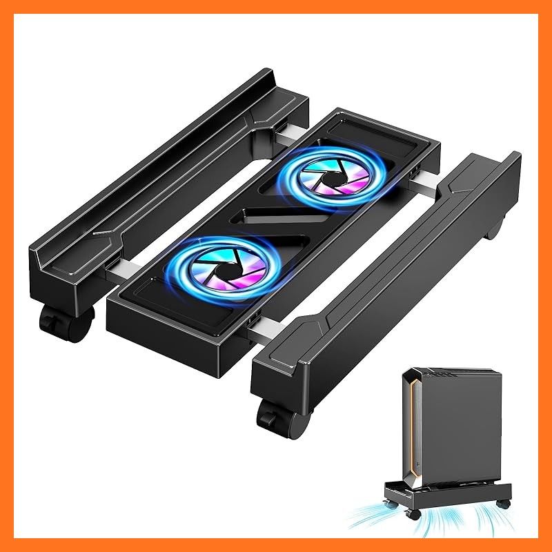 【新品】 CPUスタンド デスクトップPC置き台 冷却ファン内蔵 パソコンラック PC台 サイズ無段階調節 キャスター付き台車 ストッパー4か所 熱対策 オフィス/デスクワーク 耐荷重45kg 簡単設置 0