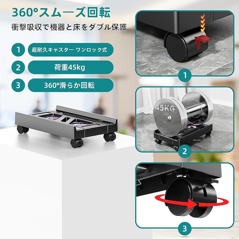 【耐荷重45kg設計&超安定構造】強い耐荷重能力を高め、コンピューターの安全性を確保します。強化スチールフレーム+静音キャスターで、サーバーや複数機器の積み重ねにも対応。業務用ラック並みの耐久性。