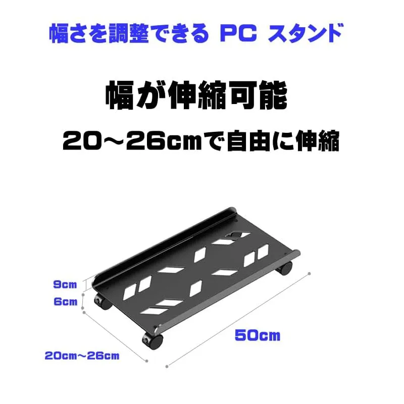 【調節可能なPCスタンド】 このPCスタンドは、幅を20?26cmまで無段階で調整でき、ミニサイズのPCからフルタワー型のサーバーまで対応可能です。お使いのPCに合わせてぴったりのサイズに調整できます。