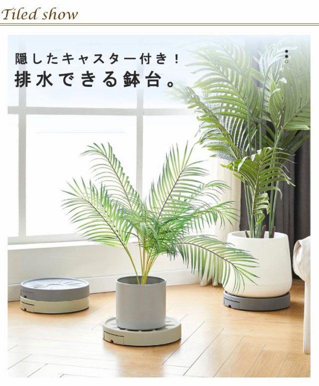 観賞植物をラクラク移動!隠したキャスター付き植木鉢トレー。キャスターが目立たないすっきりとしたデザインは、屋内のどんな空間にもフィットするので、インテリアグリーンのレイアウトの幅を広げます。