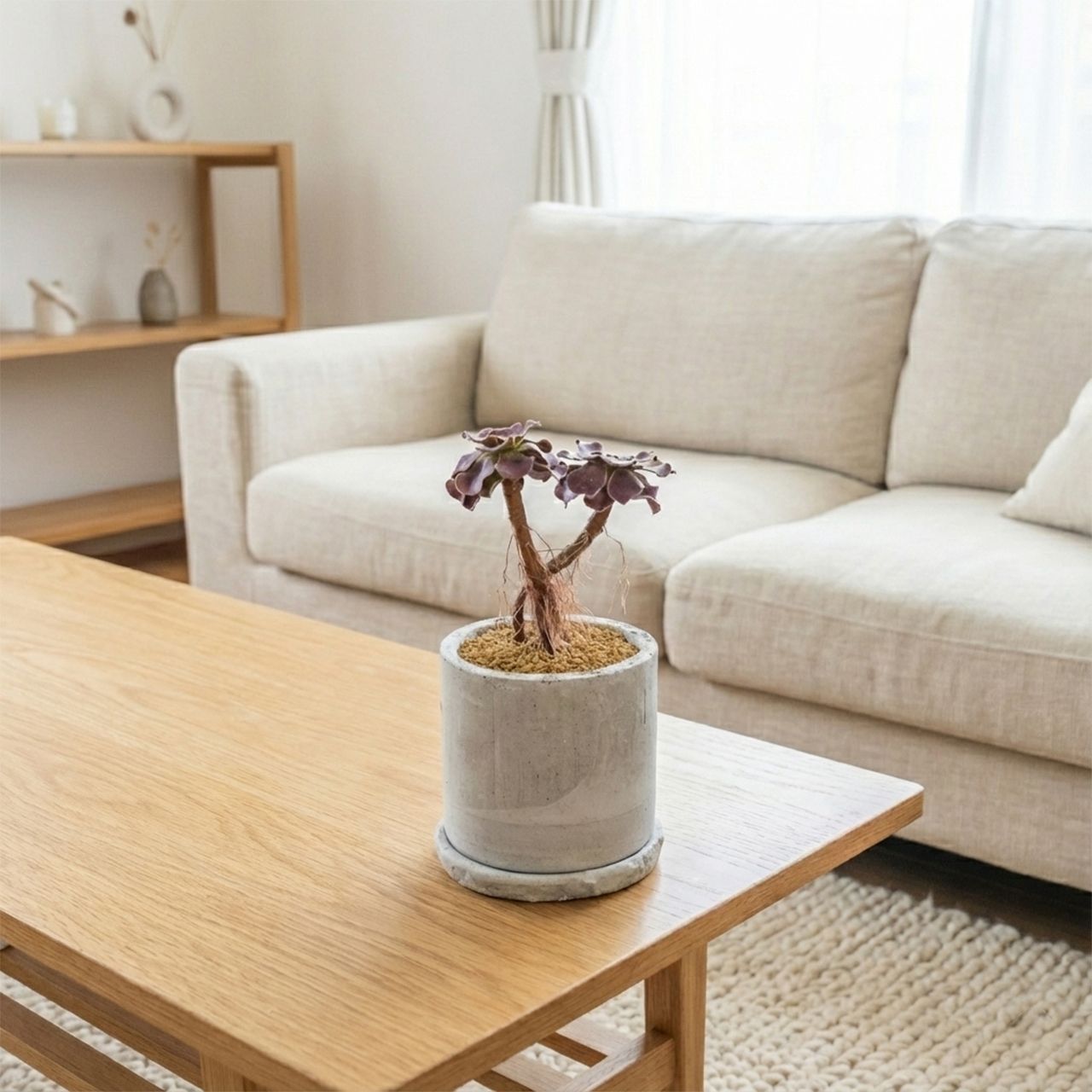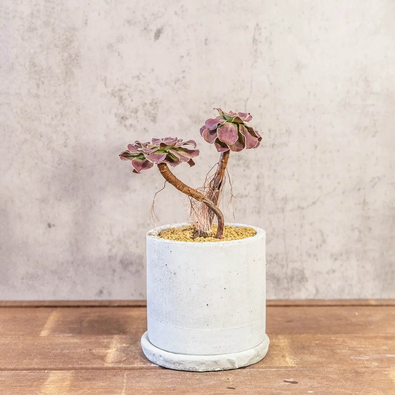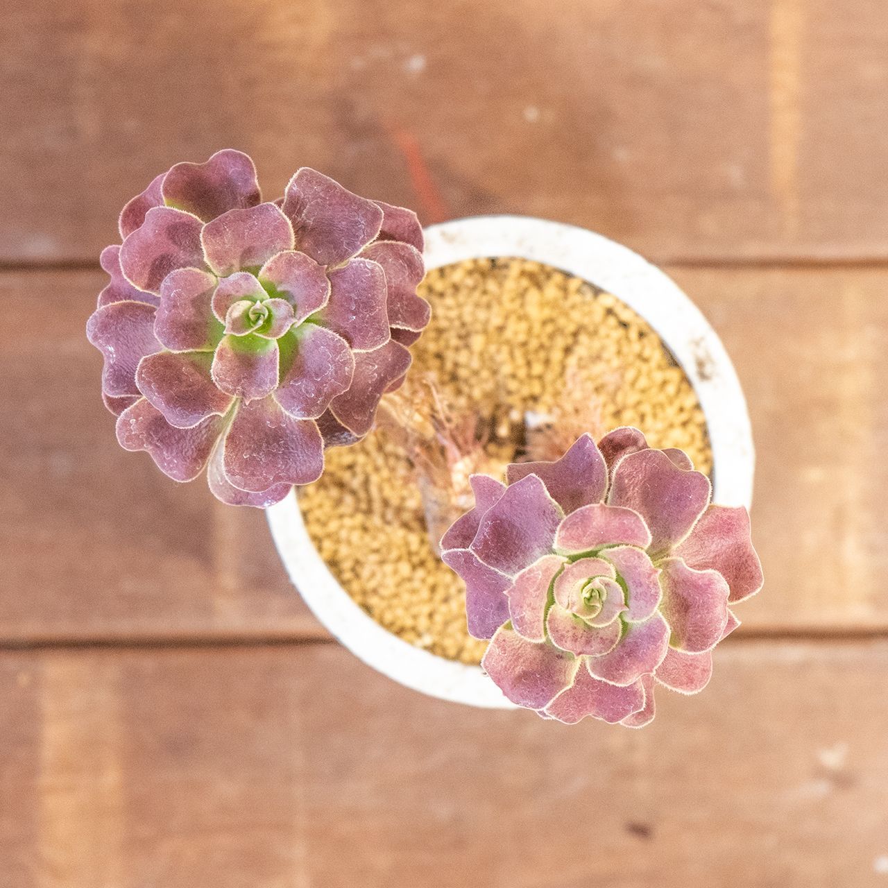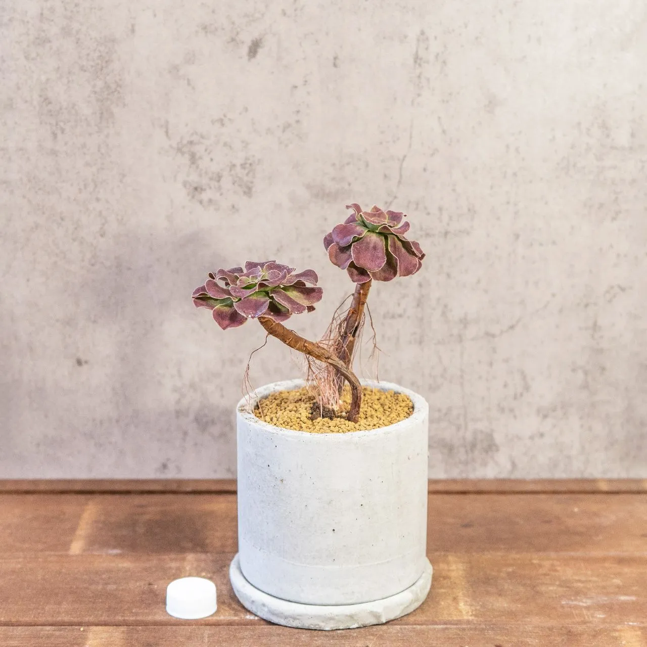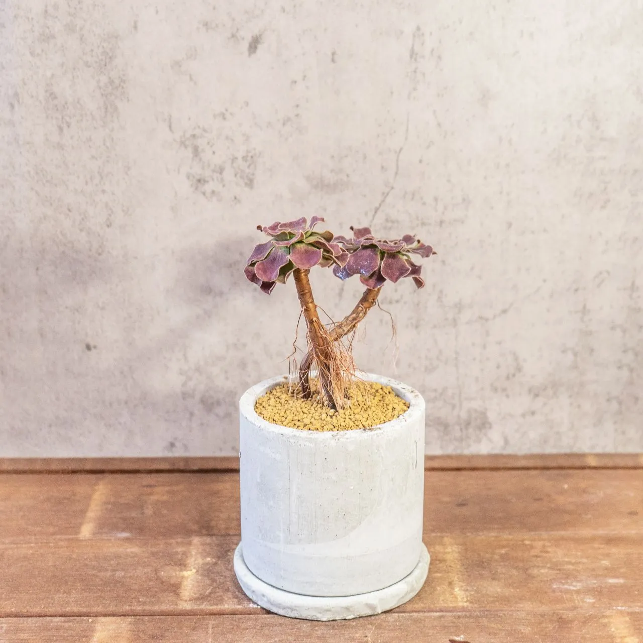 ■ 商品情報 ・植物名:アエオニウム・カシミアバイオレット ・サイズ:全長 約23cm / 鉢幅 約11.5cm ・用土:排水性を重視した乾きやすい配合土 ・鉢:オリジナルモルタル鉢(ライトグレー・鉢底穴あり) ※鉢と同素材の