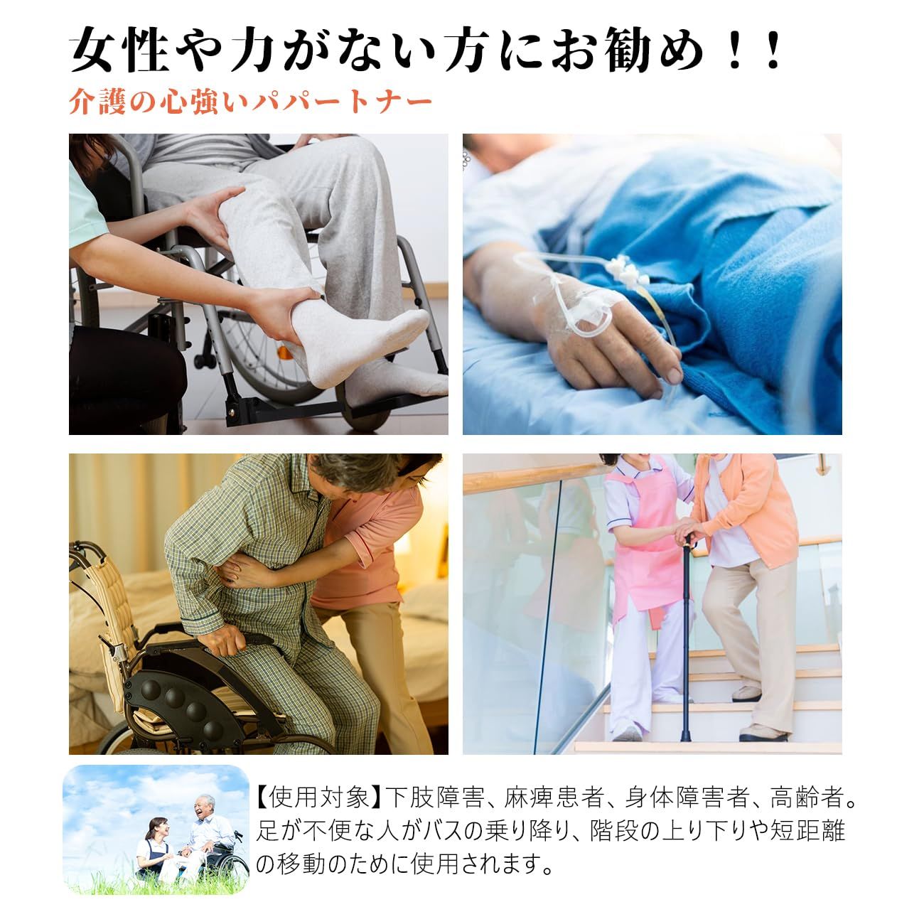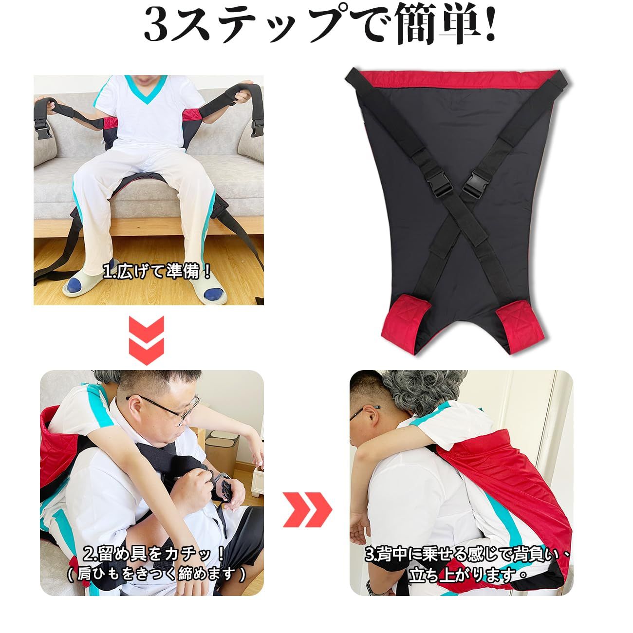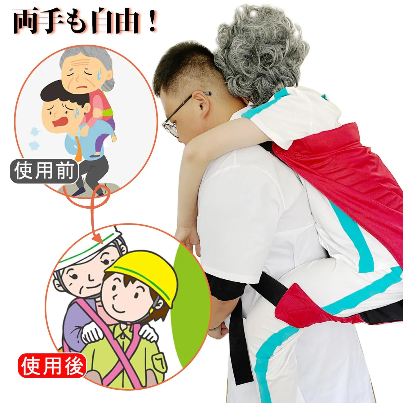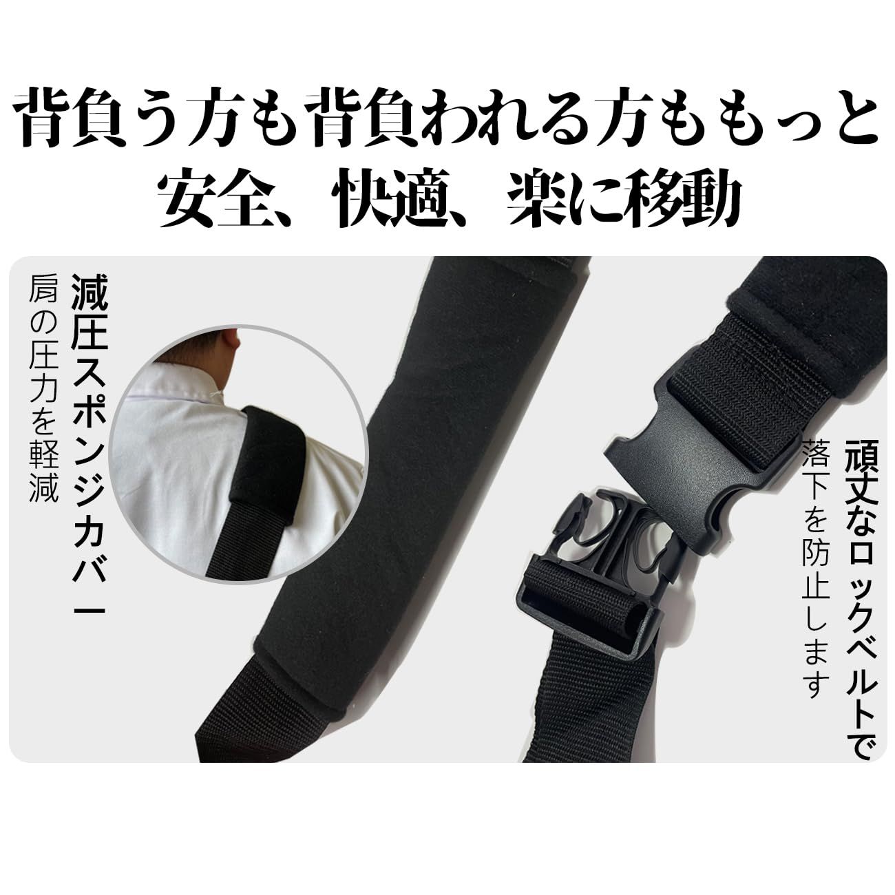 【ひとりで運べる!両手も自由♪】両手が使えるので階段も安全に搬送。麻痺患者、足が不便な人、高齢者にの階段の乗降、電車や車とバスの乗り降り、ベッドの移動、短距離の移動。背負う方も背負われる方ももっと安全、快適、楽に移動! ?