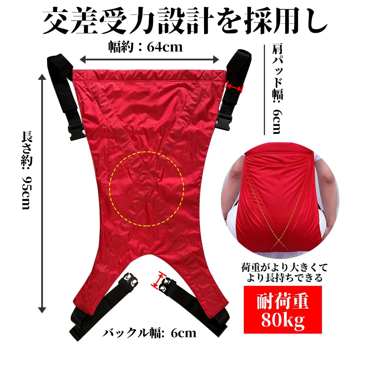 【サイズ】幅約64cm/長さ約95cm/肩パッド幅6cm/バックル幅6cm/耐荷重: 80kg 他でも販売しているため、 数に限りがありますので、お早目の購入をおススメします。 どうぞよろしくお願いいたします。