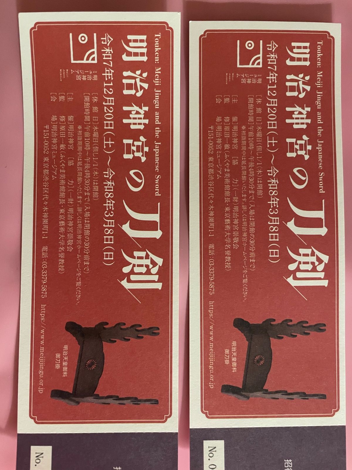 明治神宮の刀剣展 入場券 招待券 2枚セット