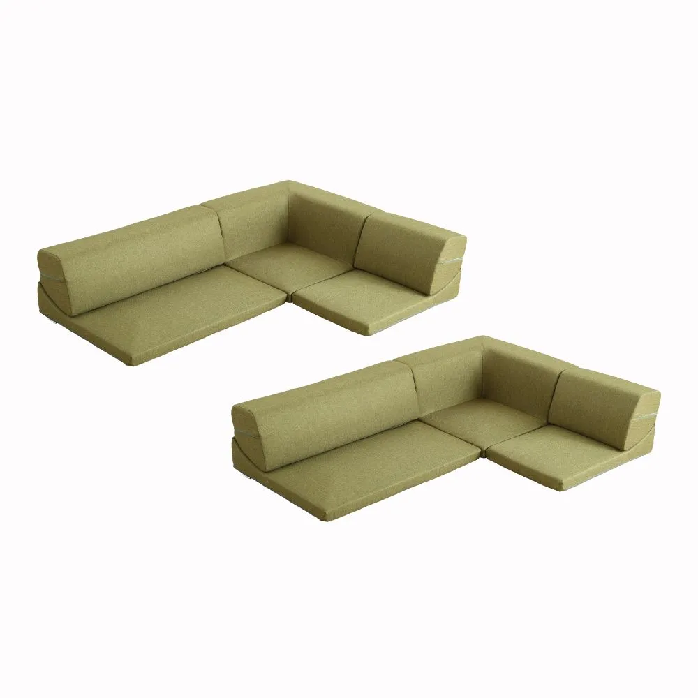 コーナーフロアソファ ロータイプ ファブリック 3人掛け(5色)同色2セット|Linaria-リナリア- SH-07-LNR2SET-GE グリーン