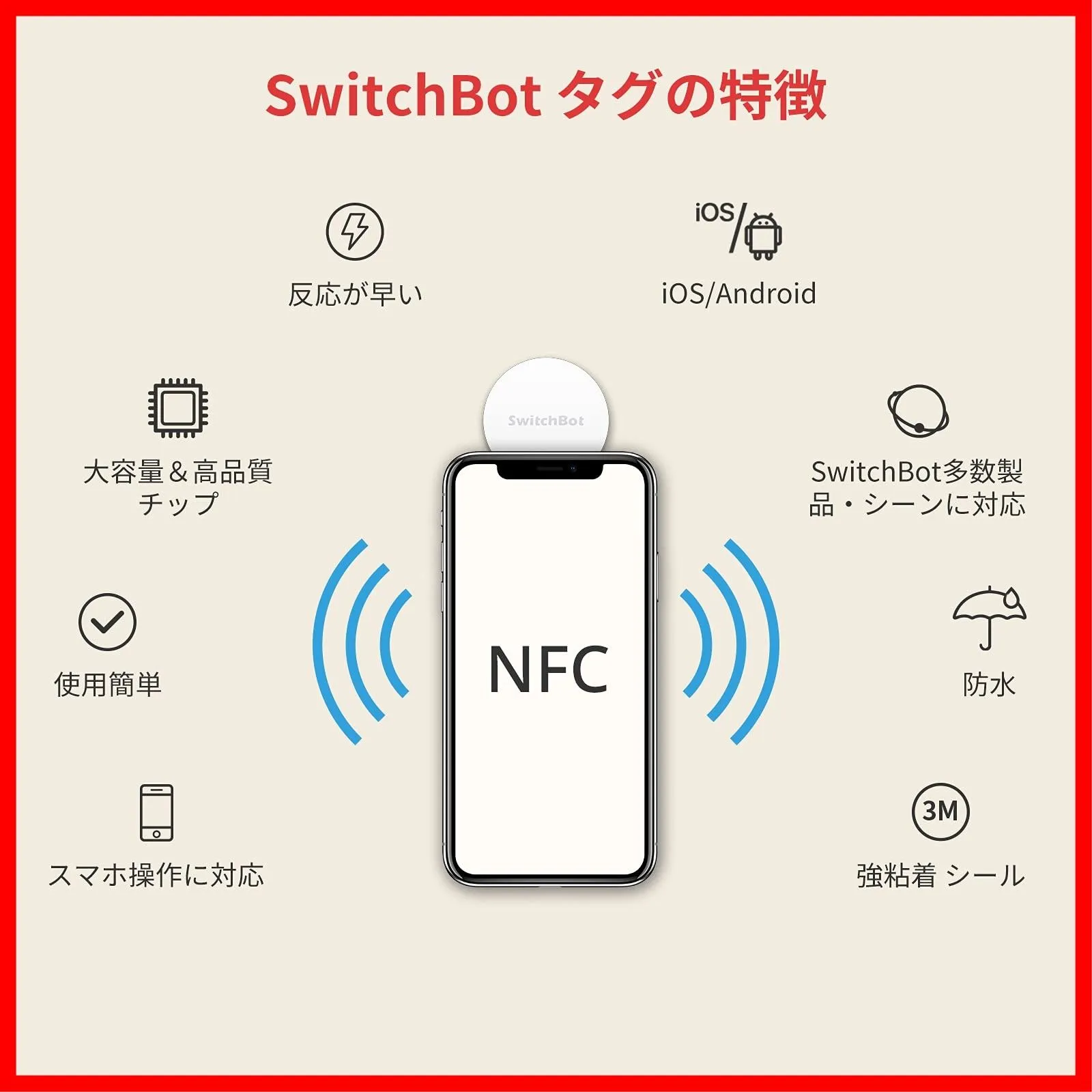 SwitchBot NFCタグ スイッチボット シール スマートホーム - NTAG216 888バイト 防水 iOS Android対応 3枚入り