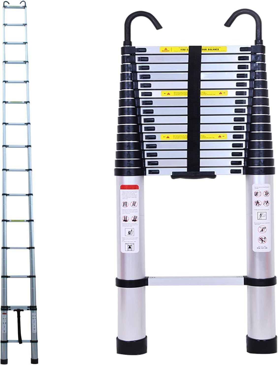 DayPlus 伸縮はしご 5m フック付き 持ち運びやすい 折り畳み 伸縮梯子 多機能アルミはしご 自動ロック スライド式 伸縮自在 高所作業 そうじ 日本語説明書付き (5M)