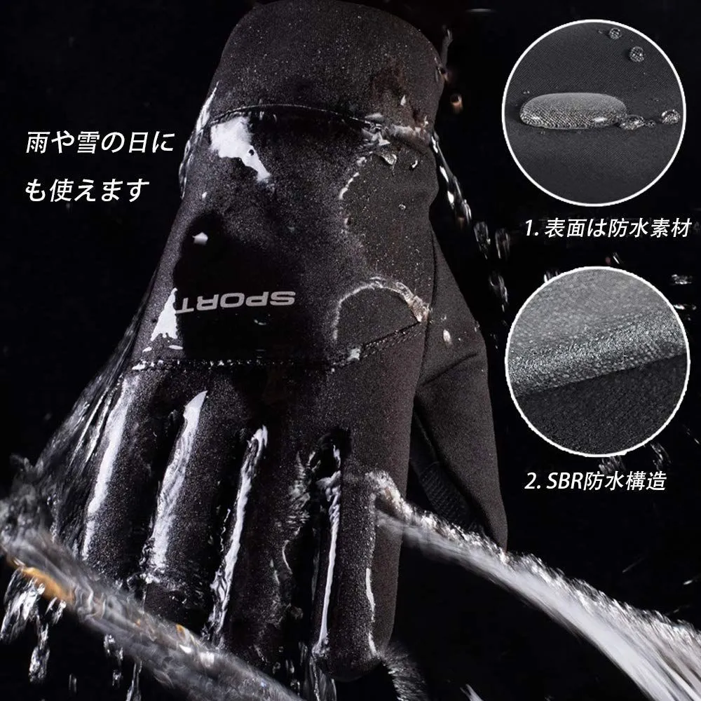 【優れた防風・防寒性能】表面は高密度の潜水布、裏地は毛足の長いボア素材で、抜群の防風・防寒性能を実現した防寒手袋です。潜水布はウェットスーツでも使われる高級なポリエステル素材で、防風性能はバッチリ。バイクやサイクリングでも、風が通って手が凍えることはありません。通勤通学やアウトドア、スポーツと幅広く活用できる防風・防寒手袋です。撥水性もあり、多少の雨で手が濡れることもありません。