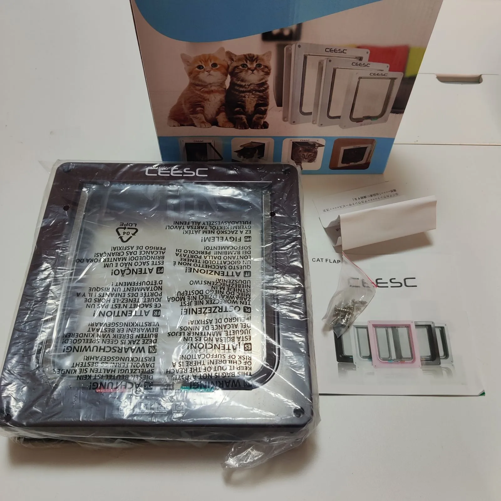 【最初にご確認ください】 初期不良等の際は評価前に取引メッセージにてご連絡お願い致します。 5日以内でしたら対応致します。 評価後の対応は致しませんのでご了承ください。 ショップ情報記載事項のご確認をお願いいたします。 Amazonのアウトレット品 開封後、中身の確認のみ 以下記載のASINをブラウザより検索し、Amazonページ参照ください ASIN:B07M9D3LX5 ※アウトレット品の為、傷や汚れがある場合がございます。予めご了承ください。 おうちのネコちゃんや小さめのワンちゃんが自由に出入りできるペット用ドアです。 一方通行(外出のみ/進入のみ)、通行自由、通行禁止の4種類の設定が可能です。 壁やドアに穴を開けて取り付けるタイプです。 間に挟むドアの厚さは、3cm程度が適当ですが、厚い場合は長いビスを用意して挟めば利用は可能です。