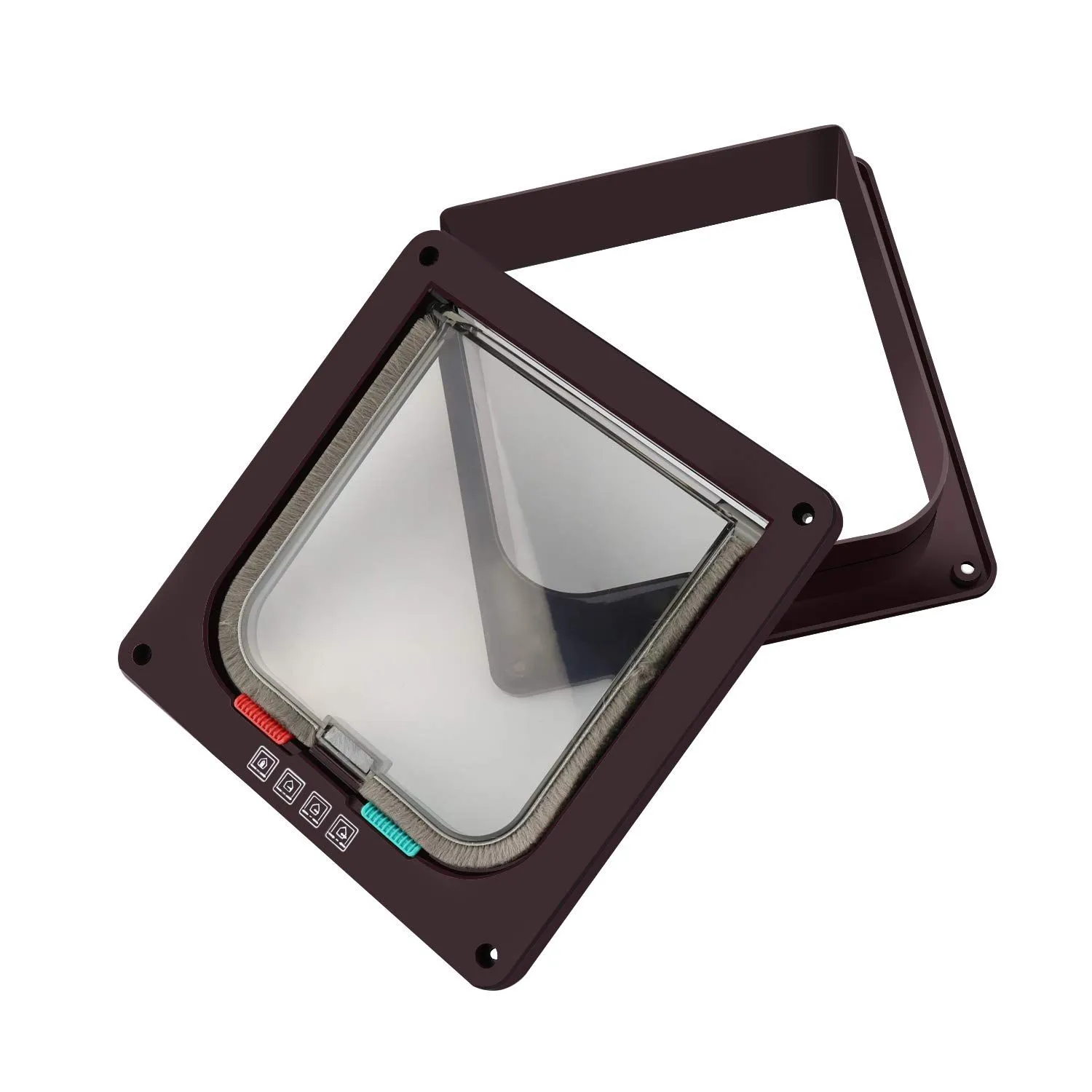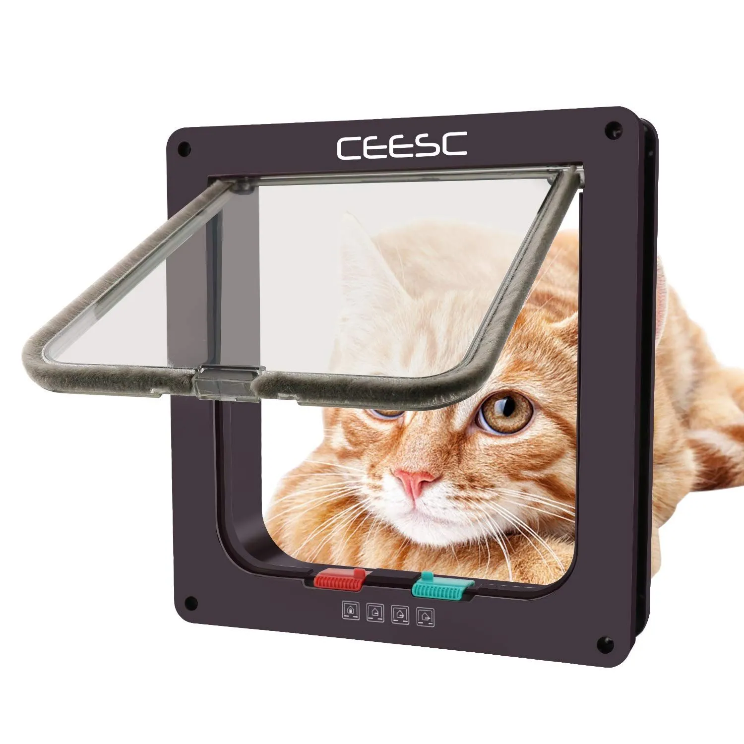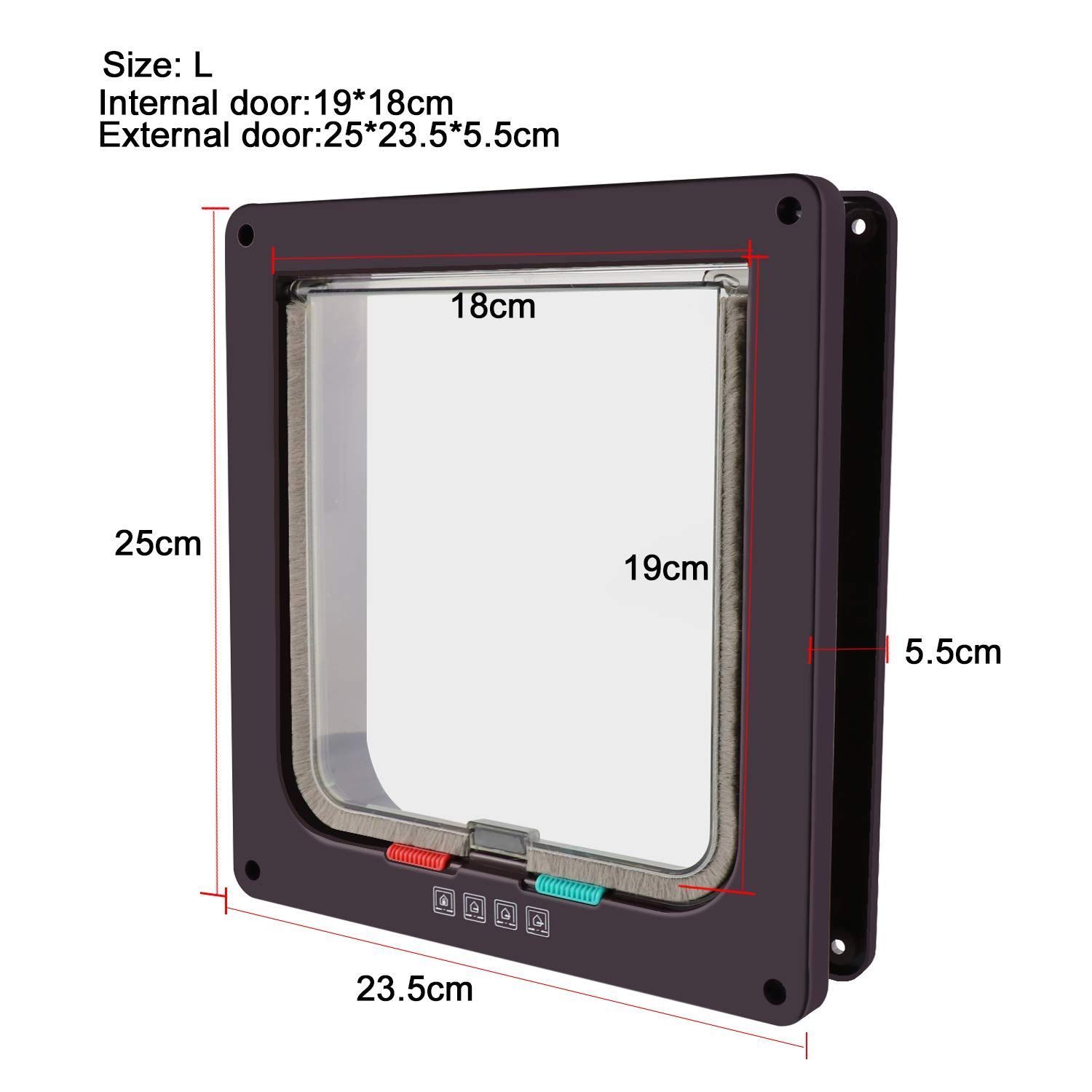 CEESC 4WAY ペットドア 小型 犬 猫 ペット出入り口 ドア 勝手口 扉 冷暖房対策 (ブラウン, 大)