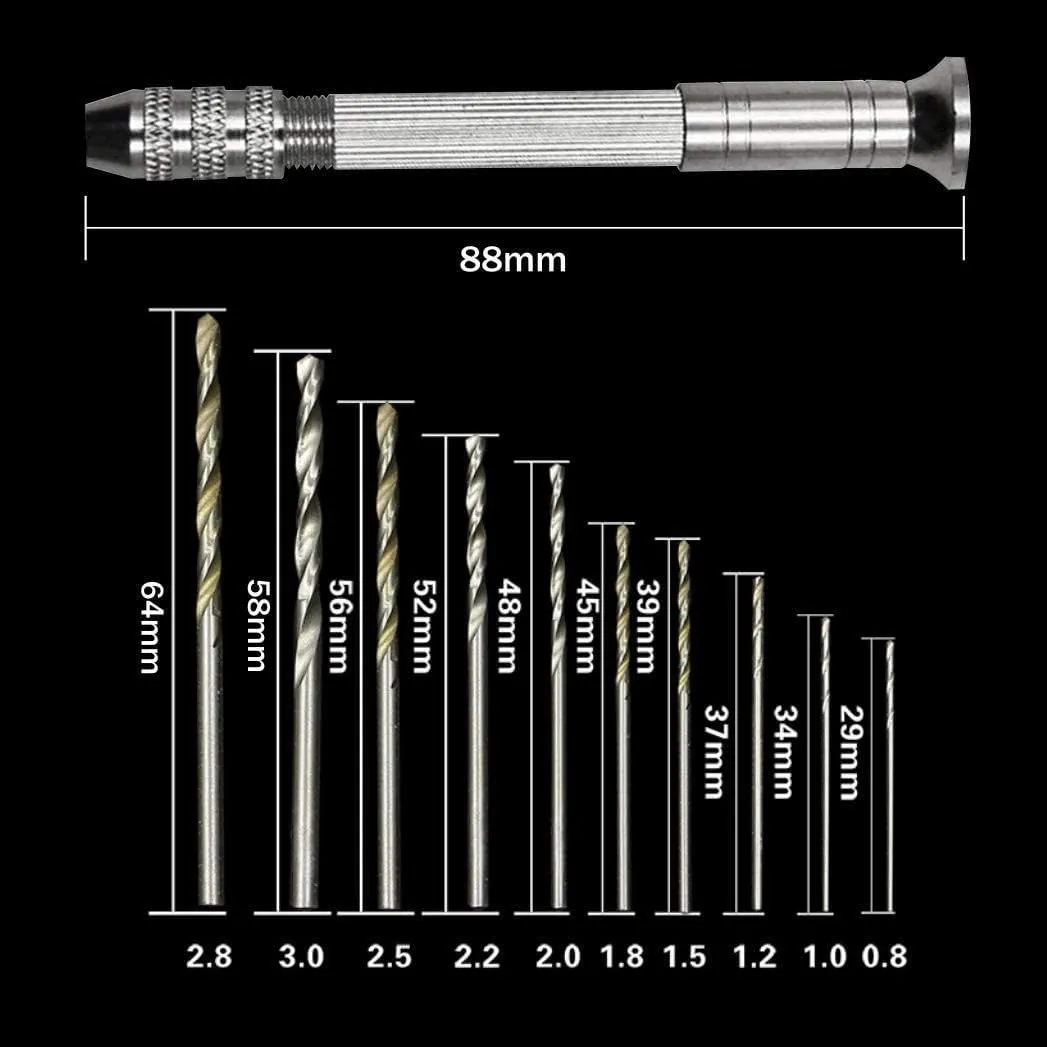 HappyHome ピンバイス ドリルセット 専用ケース付き 精密ハンドドリル 穴あけ 木工ツール 0.8mm~3.0mm