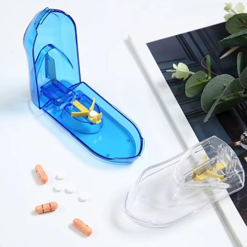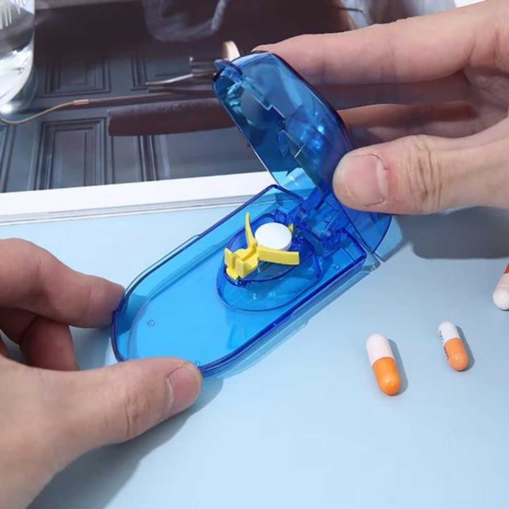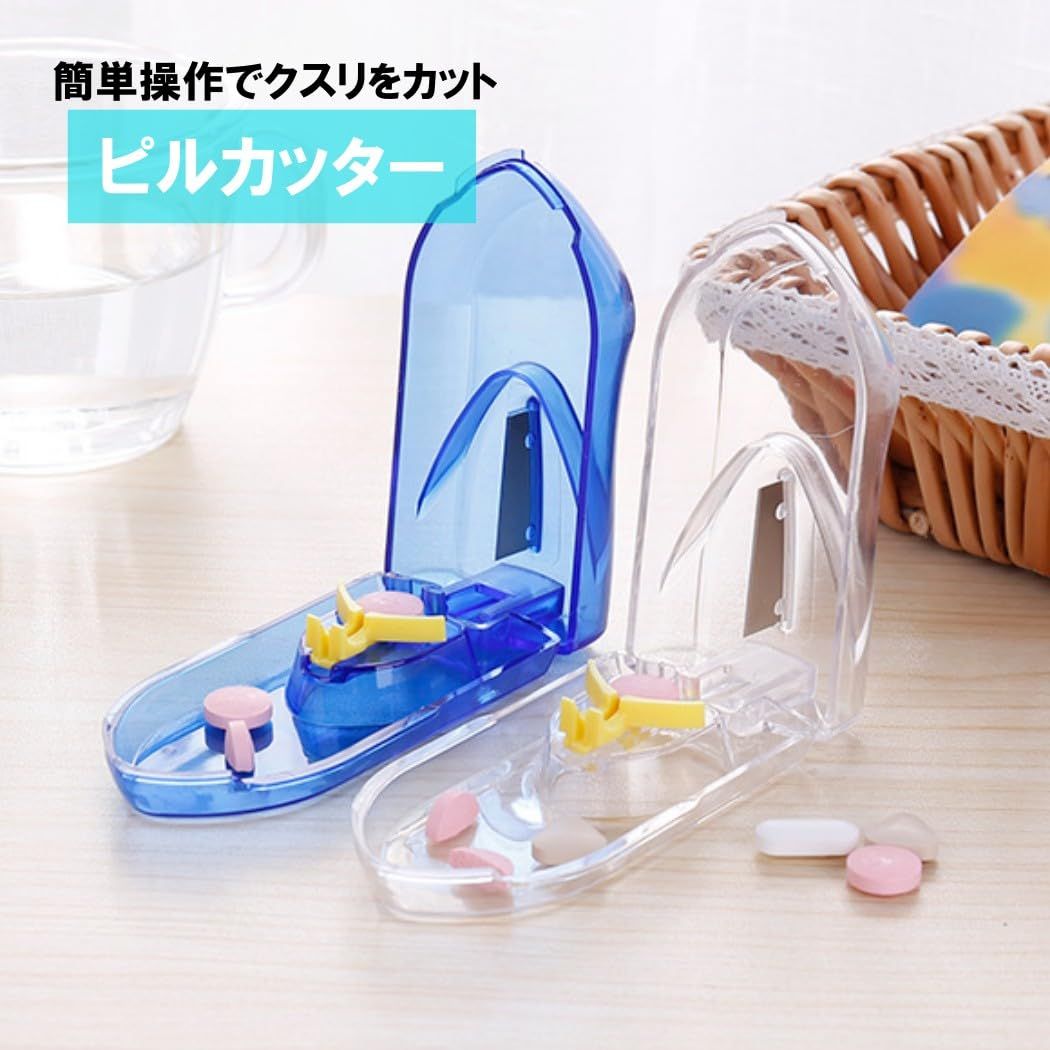 HappyHome ピルカッター ピルケース 錠剤カット 2分割 簡単操作 しっかり固定 持ち運び楽ちん 携帯用 (青)