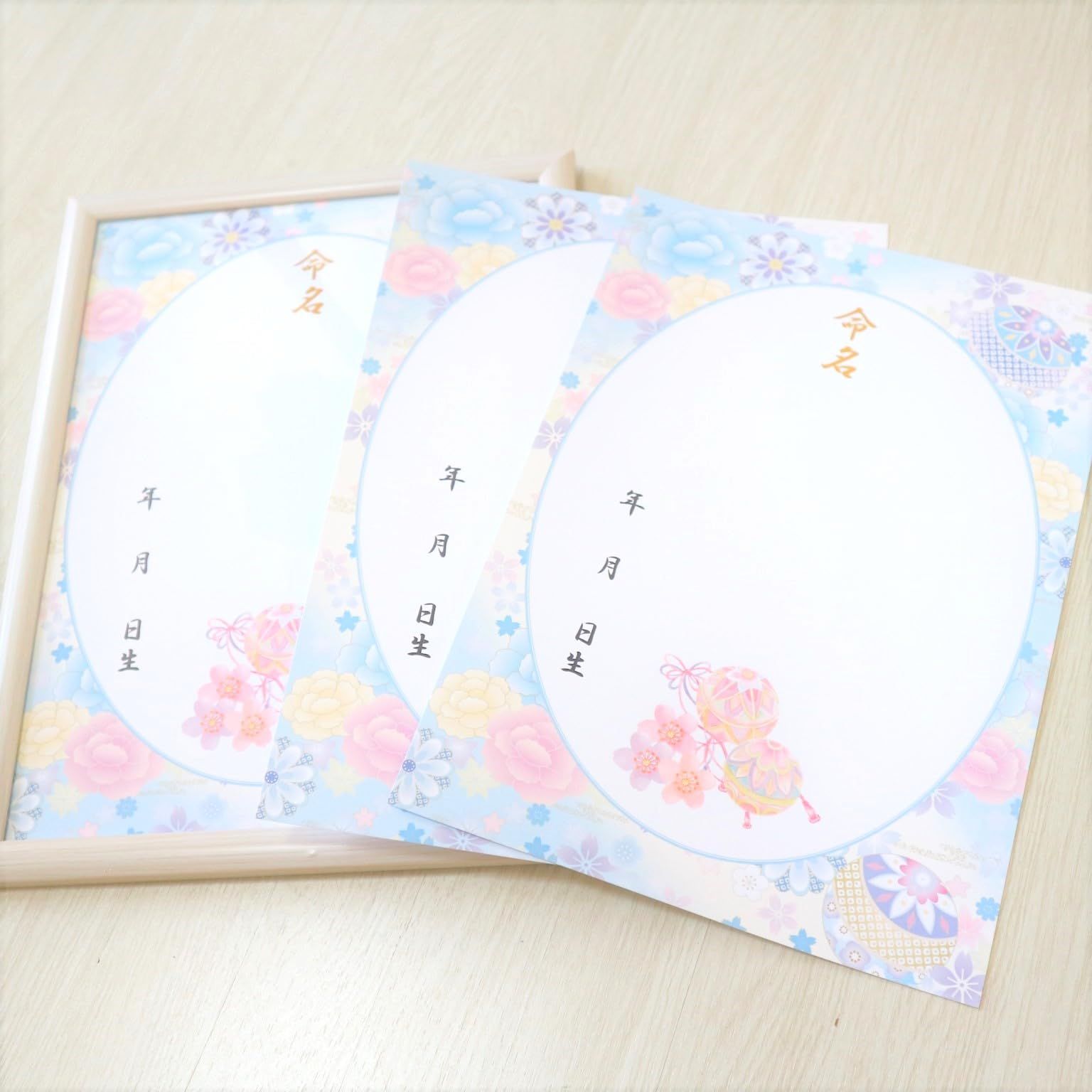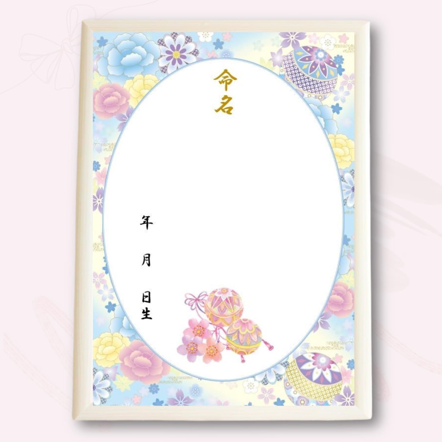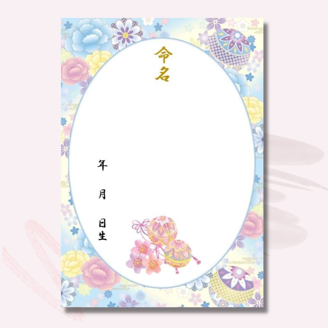 新品 《額&命名紙セット》A4和風命名用紙 毬と牡丹~水色~ 2枚入 軽量額つき 和柄華やぐ命名用紙 縁起の良い毬 令和7年生まれ 2025年生まれ 出産祝い 命名式 お七夜 女の子 男の子 パステルカラー 命名紙 命名書 日本製 MMS008-WH