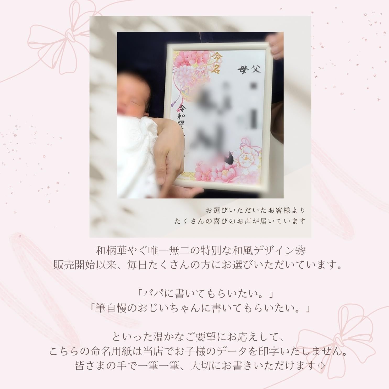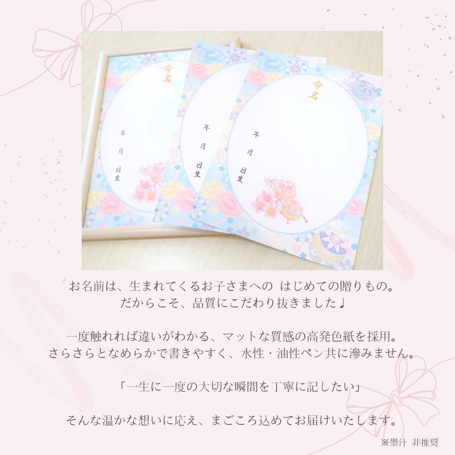 【ご注意】こちらの用紙は鉛筆と相性がよくないため下書きなどでの鉛筆のご使用は推奨いたしません。大切な命名紙ですので、ひとつひとつ丁寧な梱包を心がけています。透明のOPP袋にお包みして水濡れのないようお届けさせていただきます。プレゼントにも安心してお任せいただける仕様となっています。 配送について、商品のサイズや配送先都道府県によって最適な配送業者を選択しております。 業者・配送方法の指定は承れません。ご了承ください。 万が一の不着、紛失、誤配送の場合など、最後まで責任もって対応致しますのでご安心下さい。 宜しくお願い致します。
