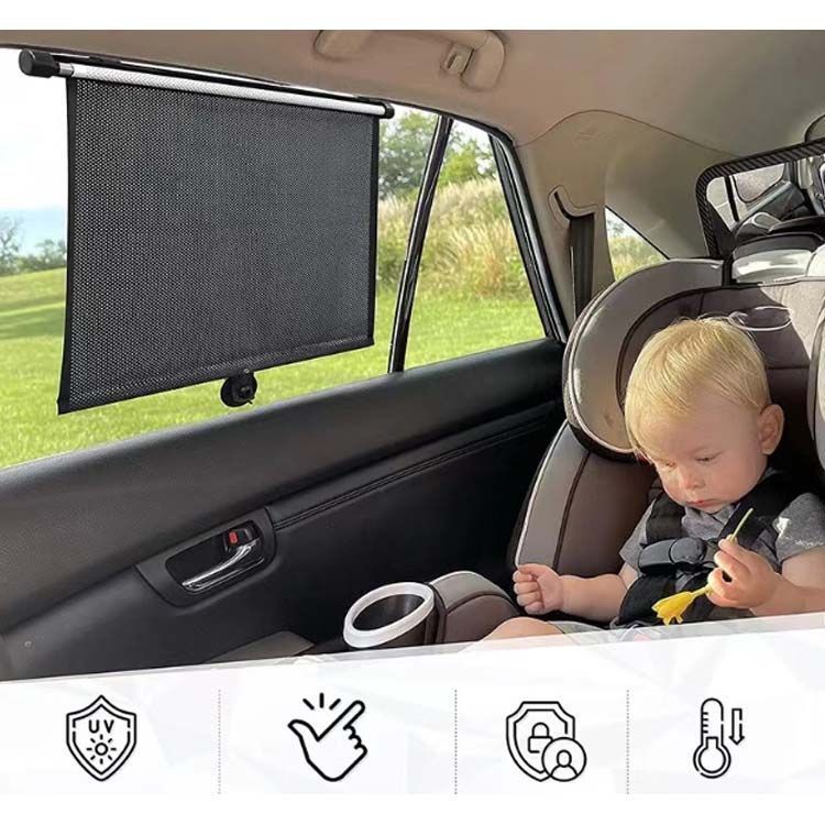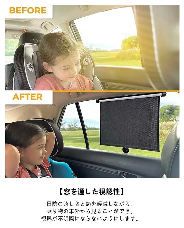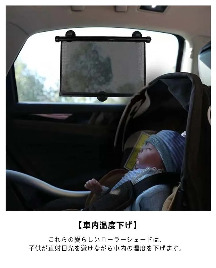 【車内温度下げ】これらの愛らしいローラーシェードは、子供が直射日光を避けながら車内の温度を下げます。
