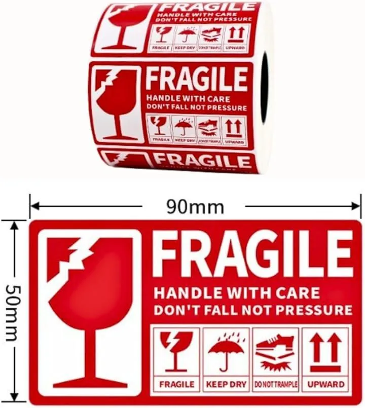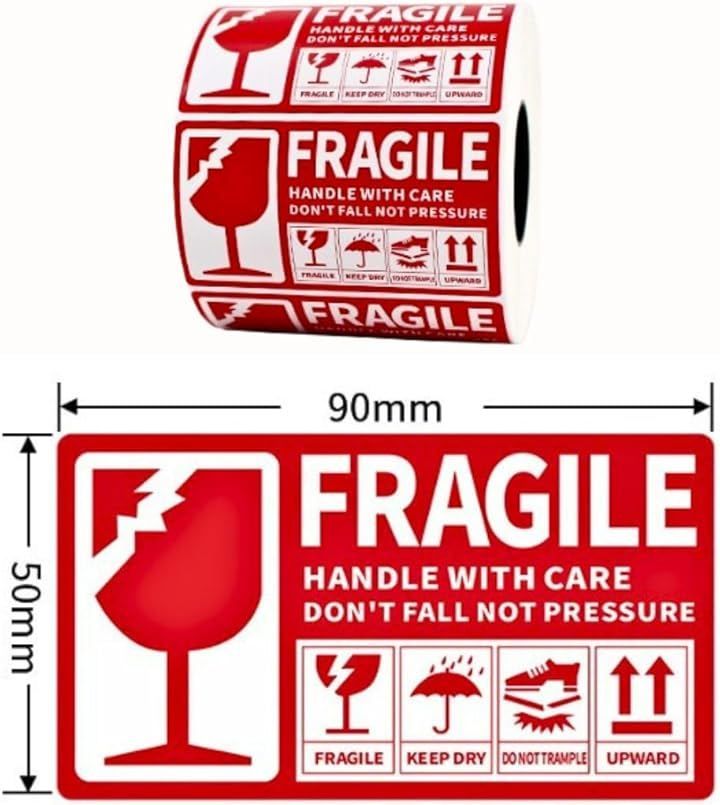 Solvanta フラジール ステッカー ラベルシール 割れ物注意 梱包用 光沢仕上げ 1000枚入り 荷物保護 引越し 発送用 (5cmx9cm)