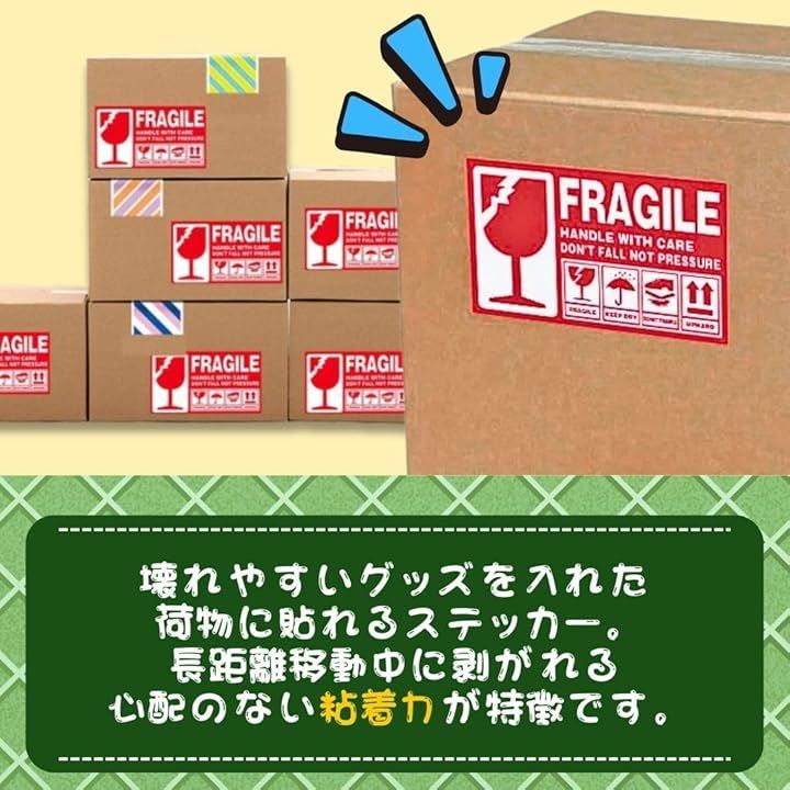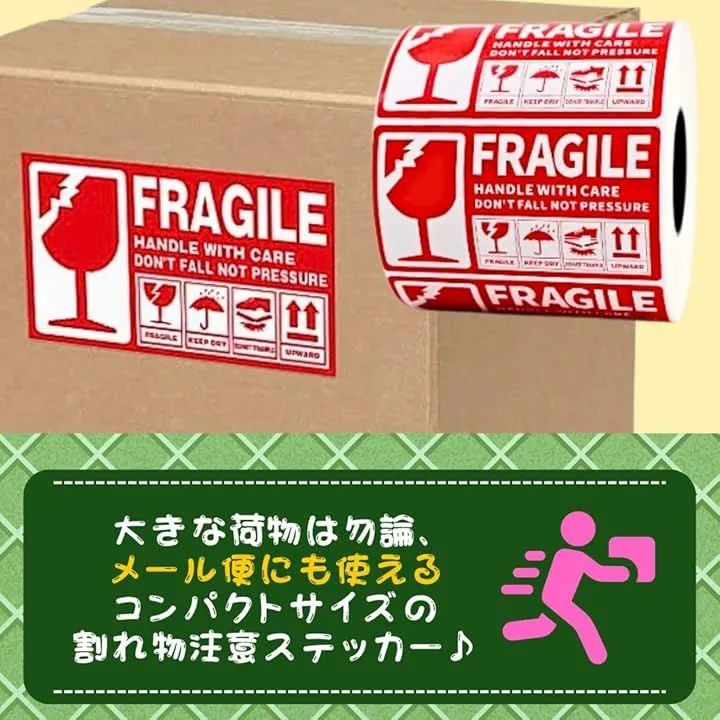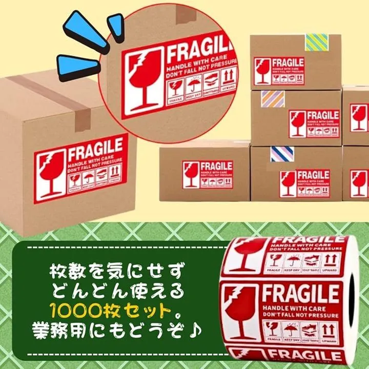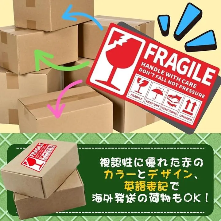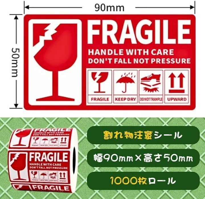 「明瞭な注意表示」FRAGILE表記と割れ物マークが視認性に優れ、配送中の破損リスクを低減します。